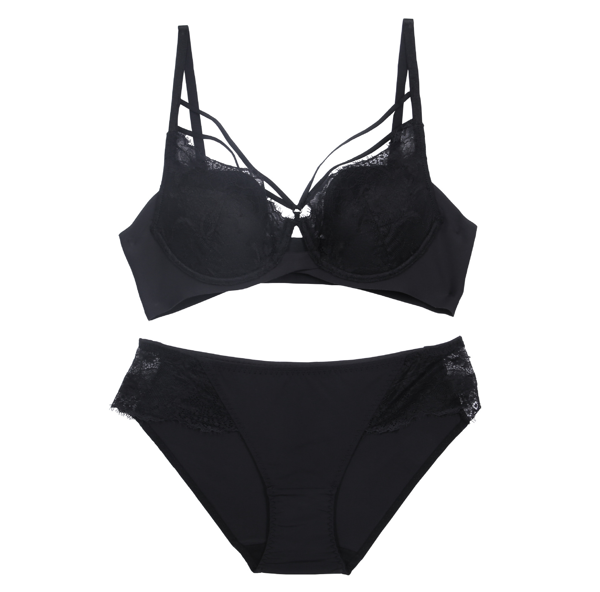 - ["Made with 70%-80% Cotton Blend, breathable and comfortable to wear","Traditional style with 3/4 cup, fixed double shoulder strap and rear three rows hooks","Lace thong design makes you look sexy and attractive","Suitable for young adults aged 18-40","Perfect for daily wearing or special occasions"]