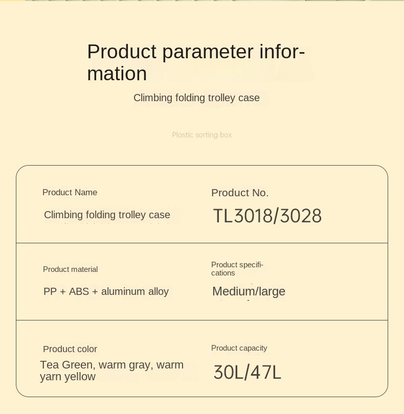 TL3018/TL3028 50L Wide Range Folding Storage Box with 8 Wheels, 100% New Material PP, Not Collapsible, with Handle, Modern and Simple Style