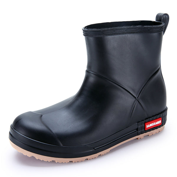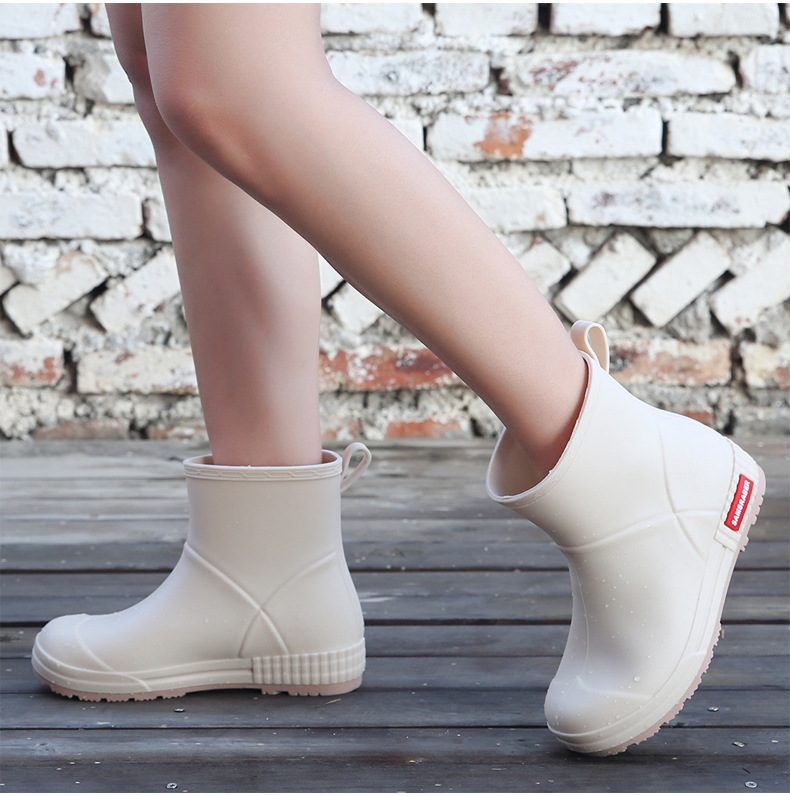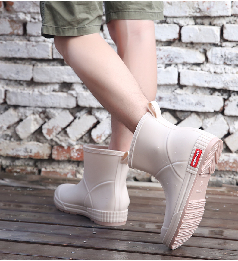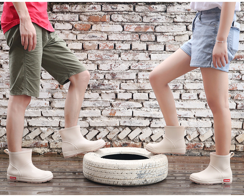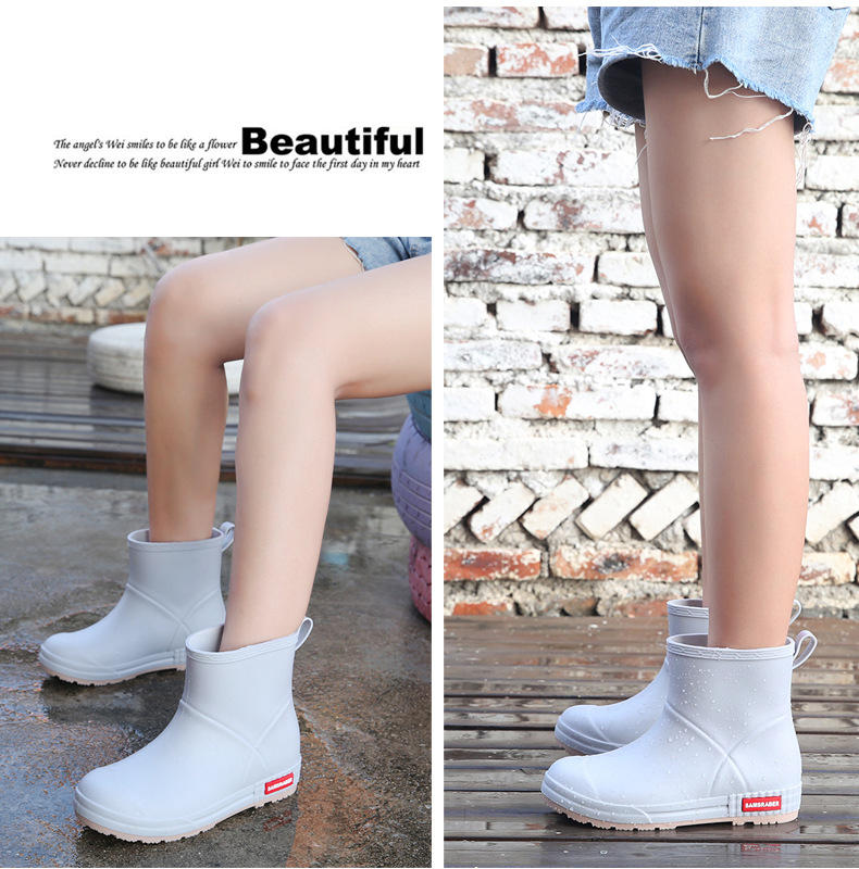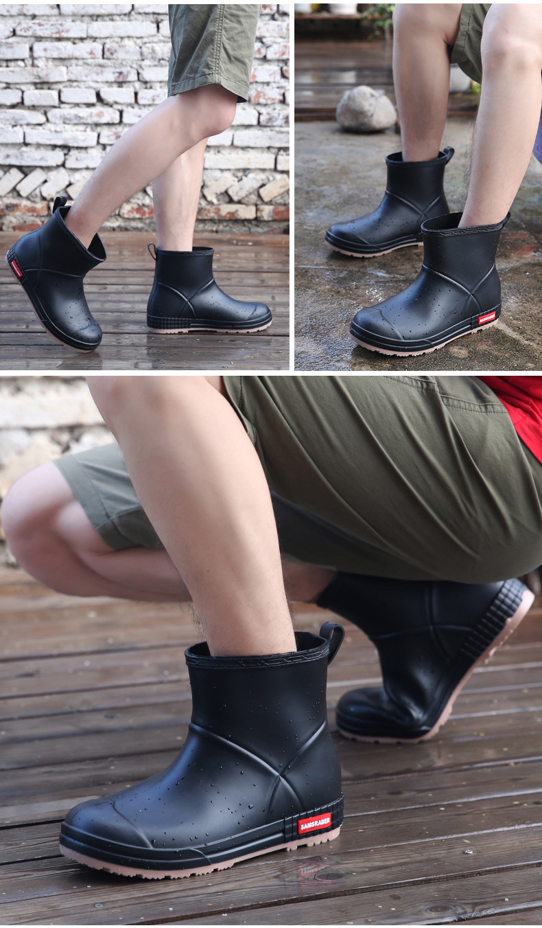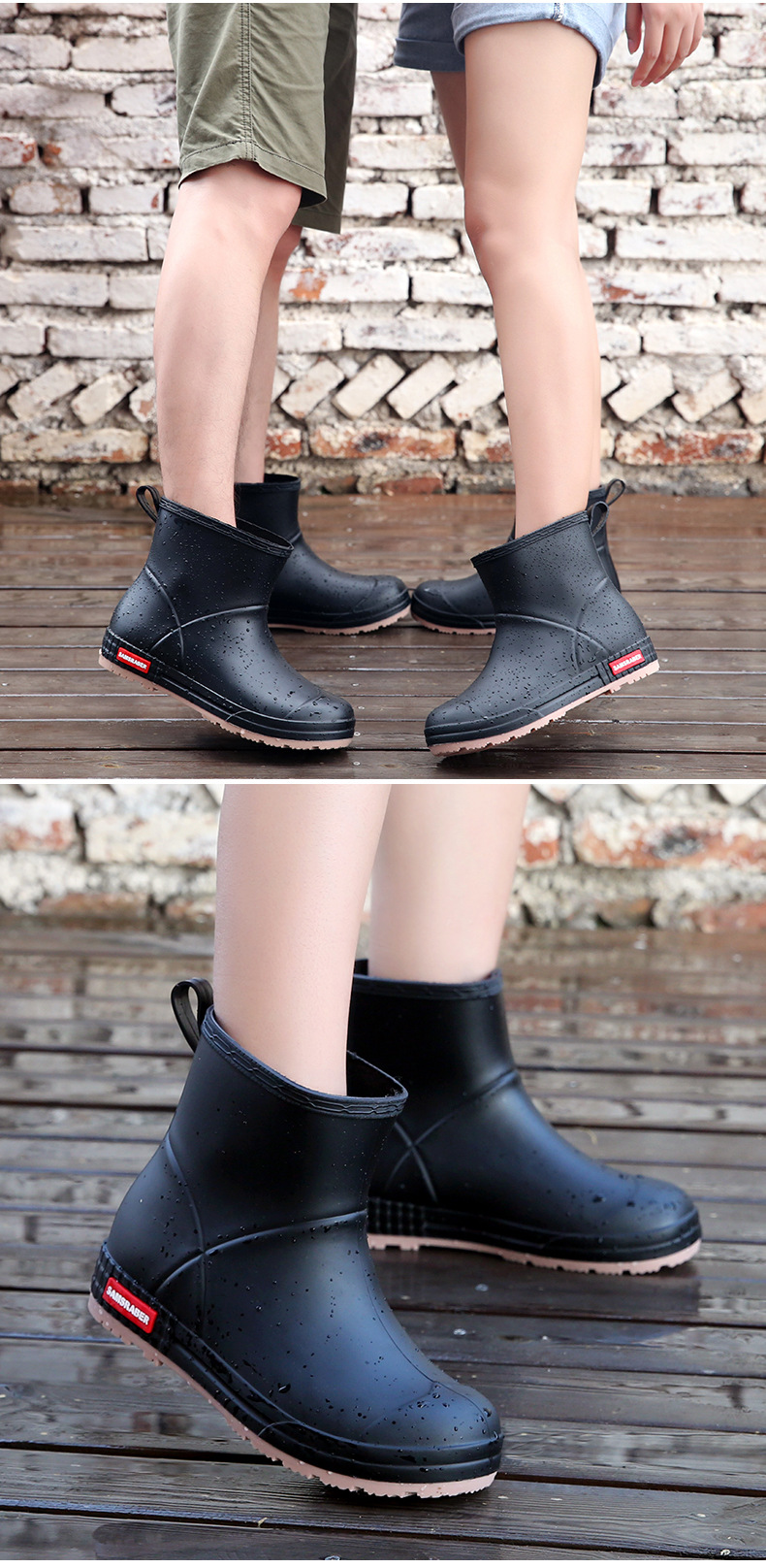 - ["Made of PVC upper and EVA outsole, breathable and anti-slip.","Waterproof and wear-resistant.","Mid-calf height.","Suitable for men and women.","Perfect for rainy days."]