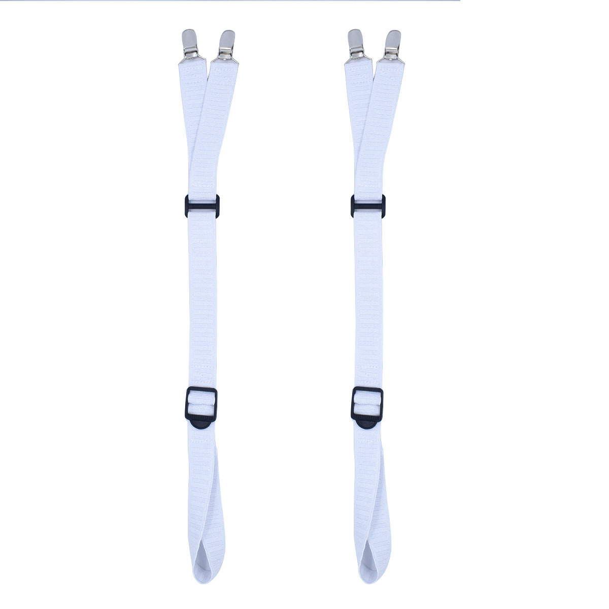 - ["Made of quality cotton material for a comfortable fit","Features an adjustable length and non-slip quality","Y-Belt design with three clips for a secure fit","Strong elasticity for a wrinkle-free look","Comes with 6 belts for easy replacement"]