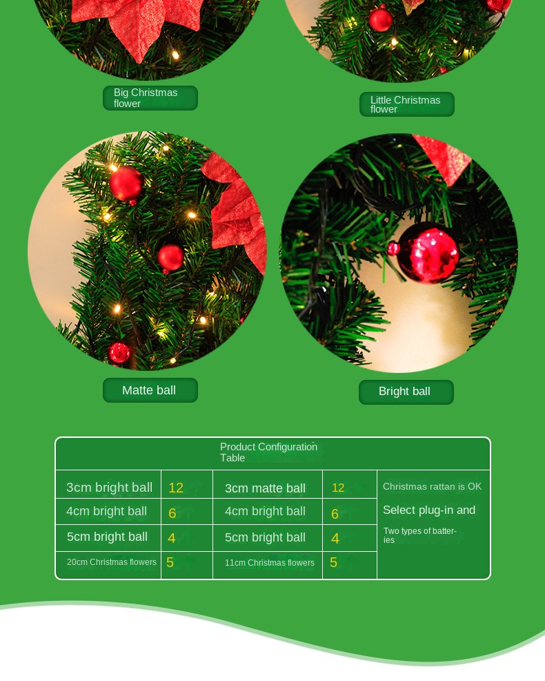 Christmas Decoration - Luxury LED Christmas Wreath Garland with Decorative Vine and Hanging Lights