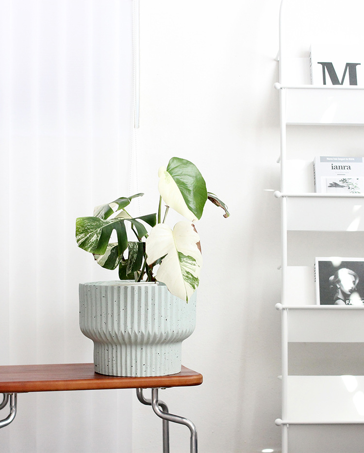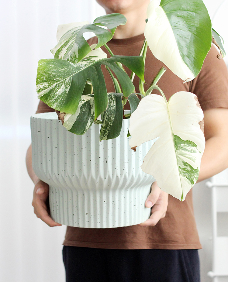 Modern Nordic 22.3cm Handmade Magnesium Oxide Flower Pot with Turtle Back Bamboo for Home Decor
