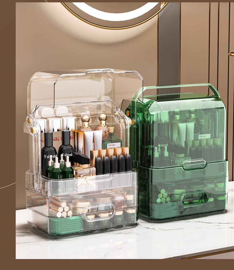 Transparent 18L Capacity Desktop Drawer Flip Cover Cosmetic Storage Box Dustproof Skincare Storage Box