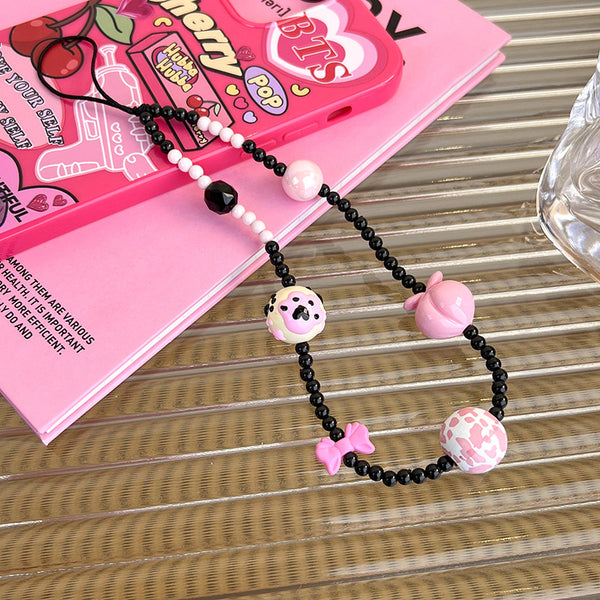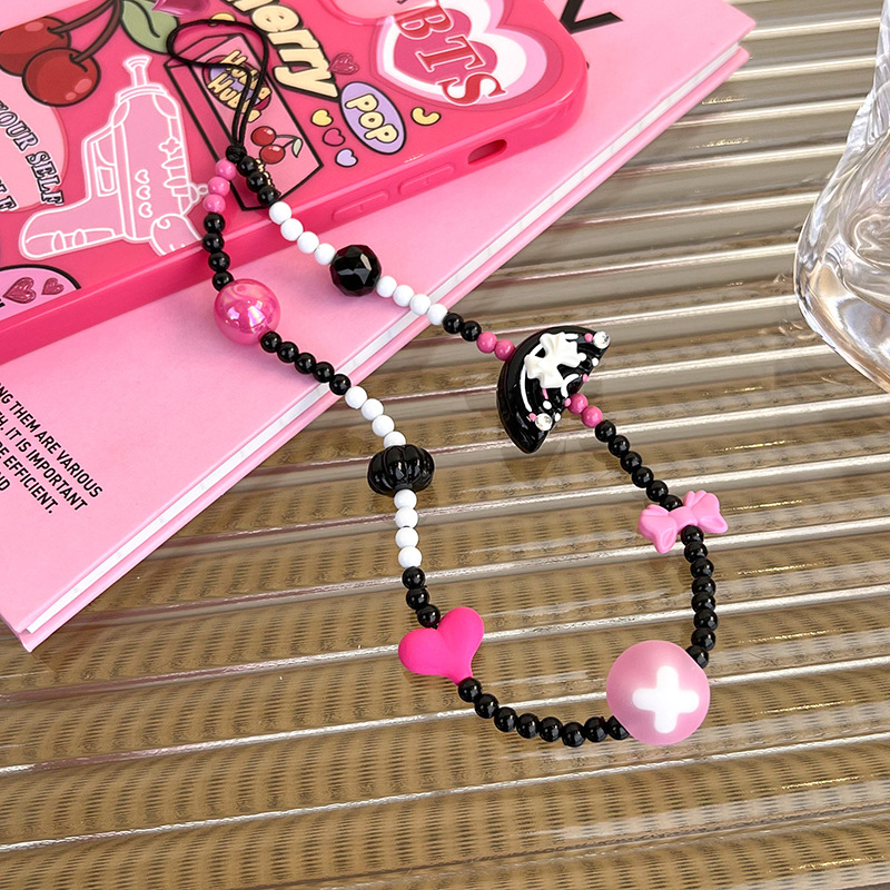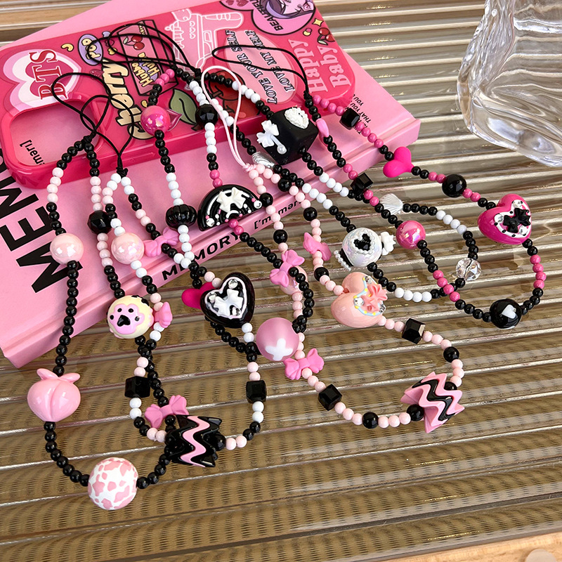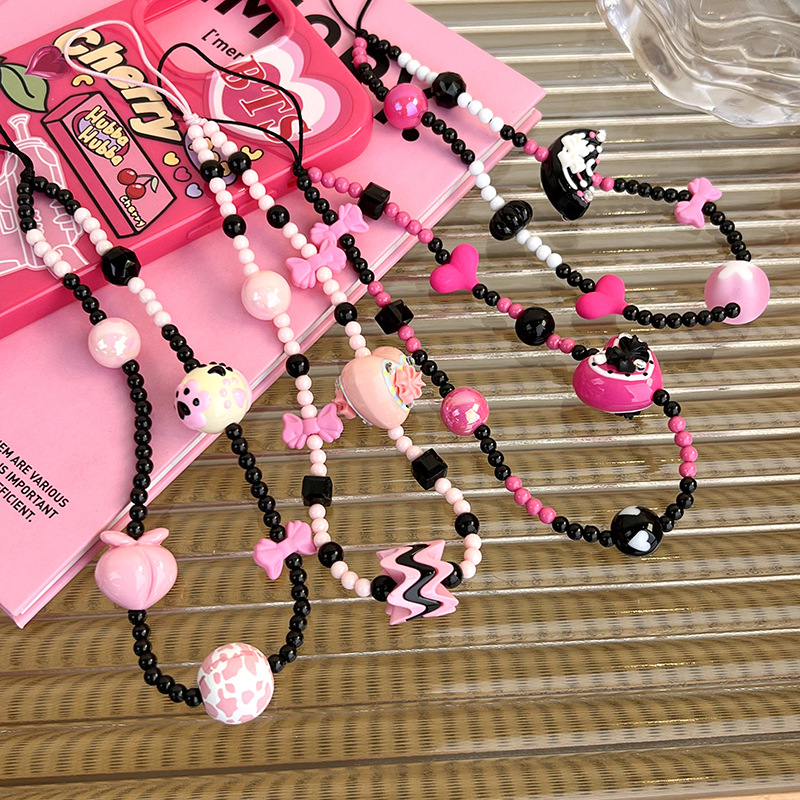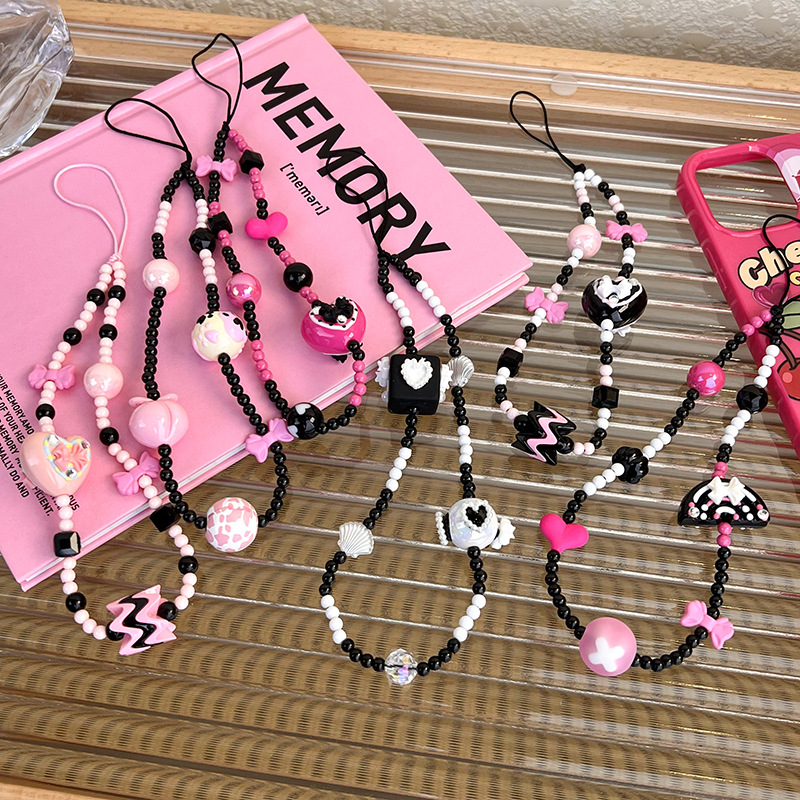Cadena de teléfono móvil de cuentas de árbol hechas a mano para mujeres con cadena de cámara CC y estilo INS