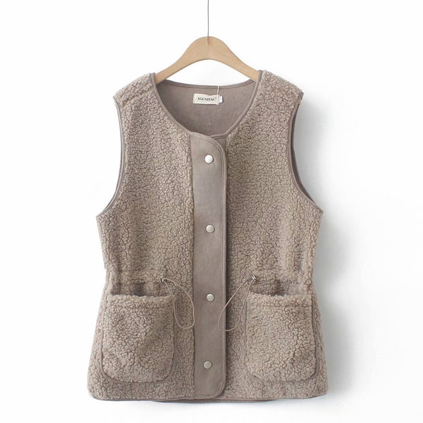 Chaleco de estilo coreano de talla grande - Mezcla de piel sintética/cuero/lana de tres colores