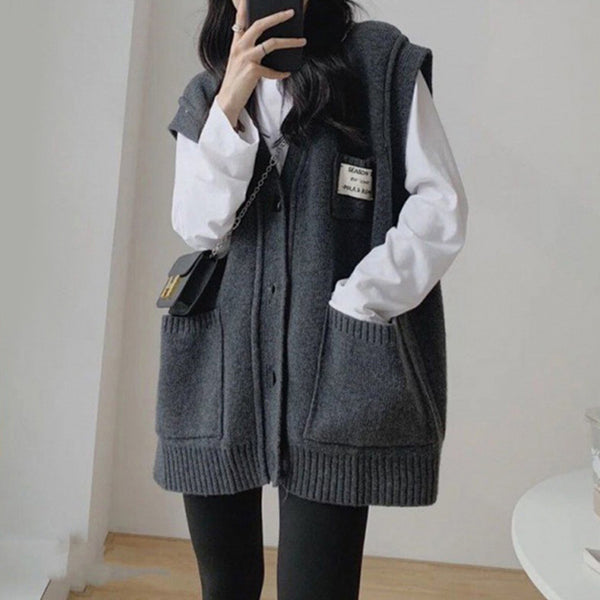Cárdigan abierto de talla grande V Cardigan de chaleco de suéter de cuello para mujeres Invierno Nuevo estilo