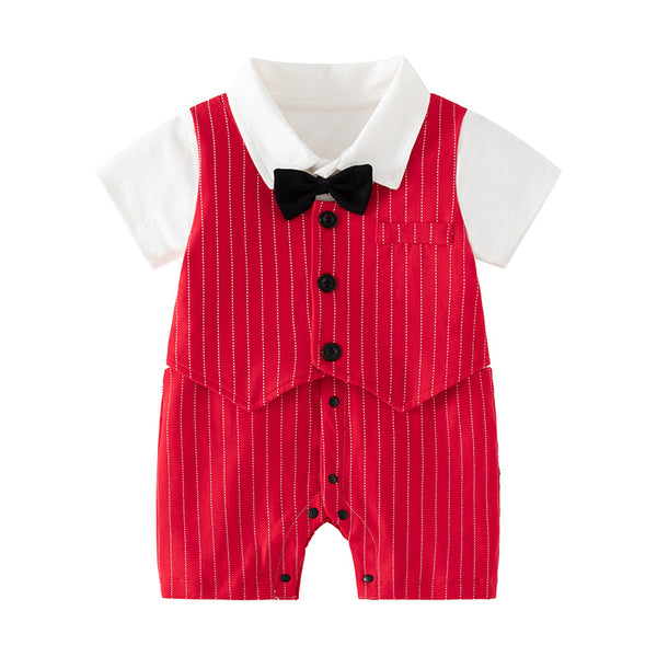 Summer Baby Romper Jumpsit Red manga corta Vestido falso de tres piezas