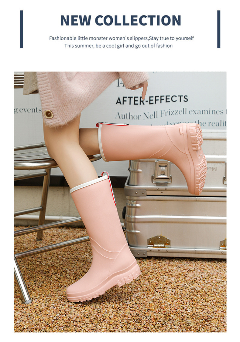 - ["Made of PVC material, waterproof and anti-slip","Low heel design, comfortable to wear","Suitable for all seasons","Fashionable design, perfect for outdoor activities","Buckle closure, easy to wear and take off"]