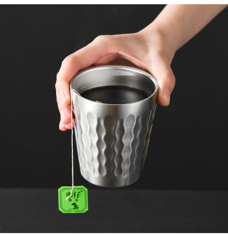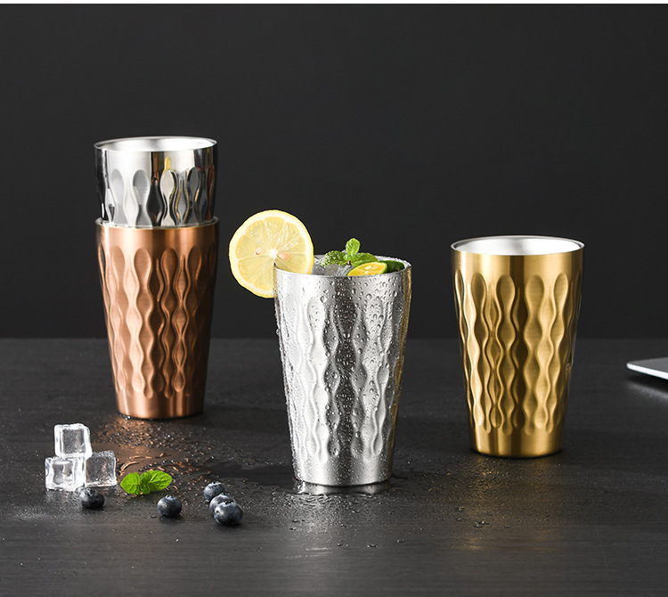 Creative Korean Double-Layer Beer Mug with 304 Stainless Steel Outdoor Water Cup and Logo Fire Ling Pattern Coffee Cup