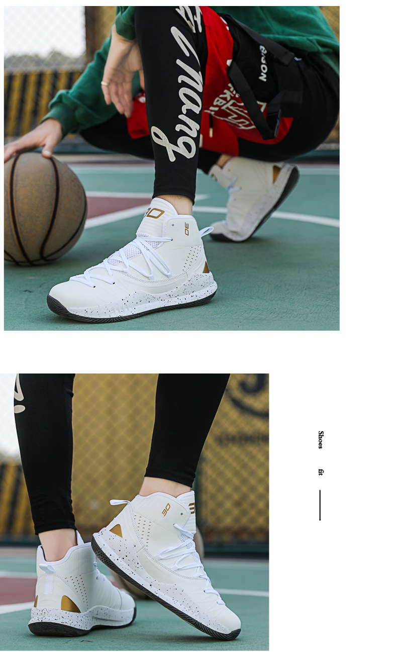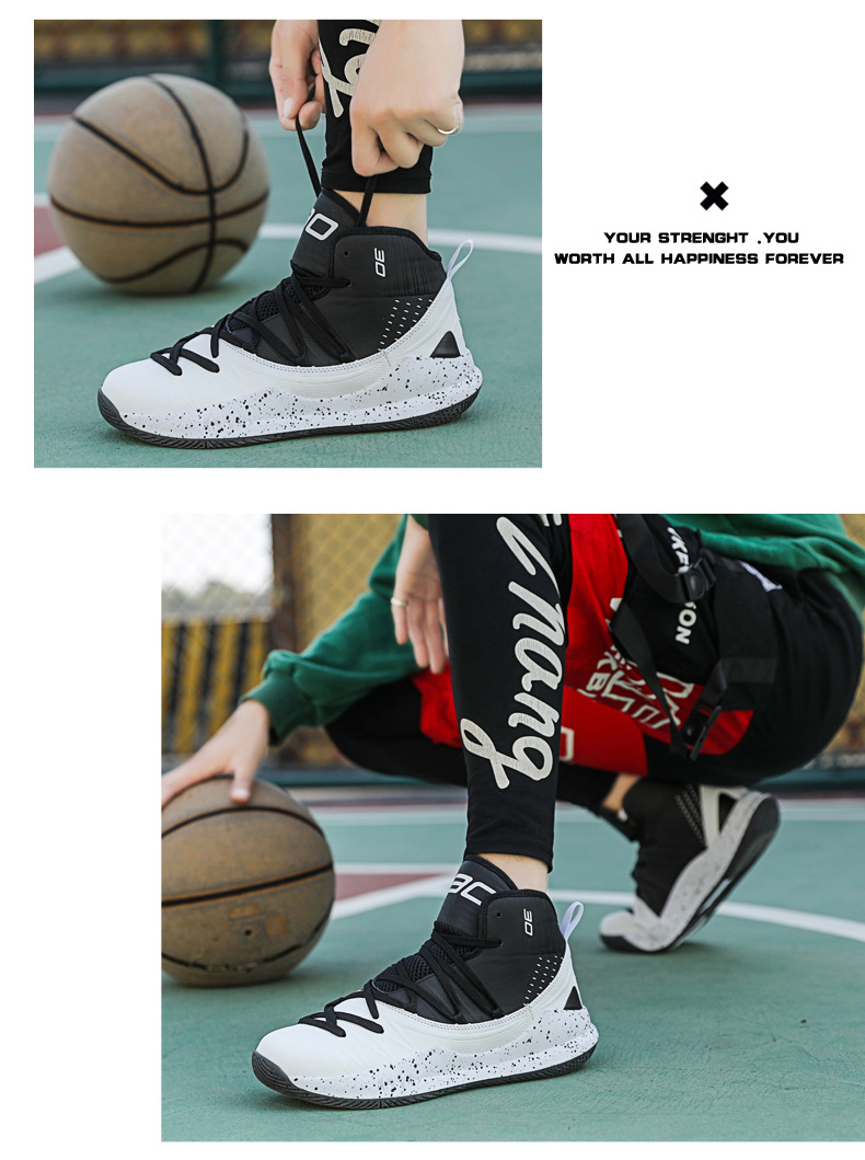 - ["45 High Top Basketball Shoes for couples, unisex for teenagers.","PU upper and outsole, net cloth inner material.","Fashionable and comfortable, suitable for all seasons.","Designed for sports, suitable for daily wear.","Easy to wear with lacing system."]
