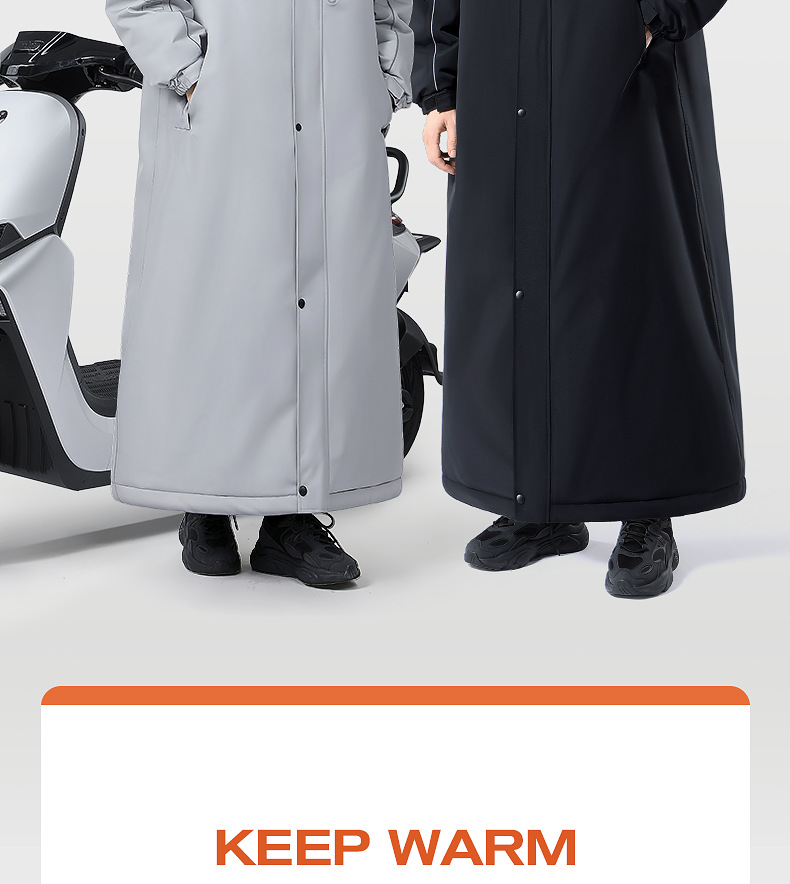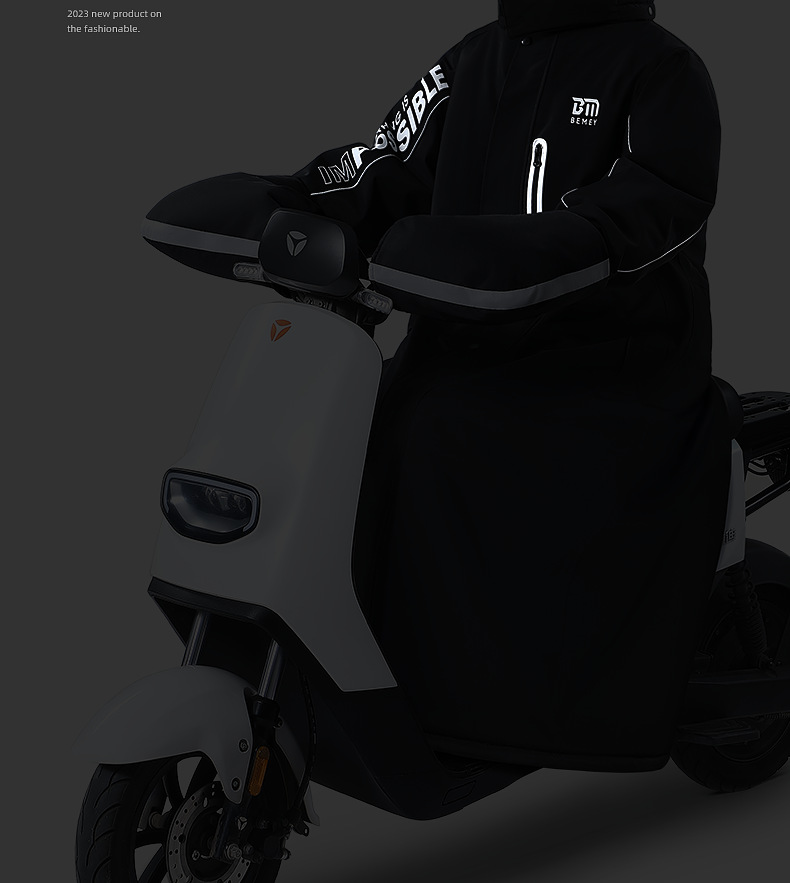 - ["Made of high quality taffeta material","Keeps you warm in cold winter","Suitable for electric vehicle, motorcycle and electric bike","Simple style and connected body design","Comes with OPP bag for easy storage"]