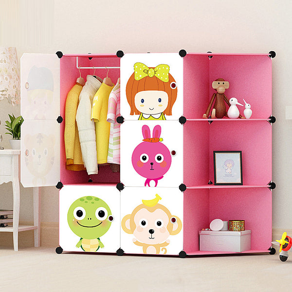 Children Plastic Assemble Wardrobe with Card Slot, Fits for CD, Stationery, Bags, Toys, Animals, Headphones, Clothes