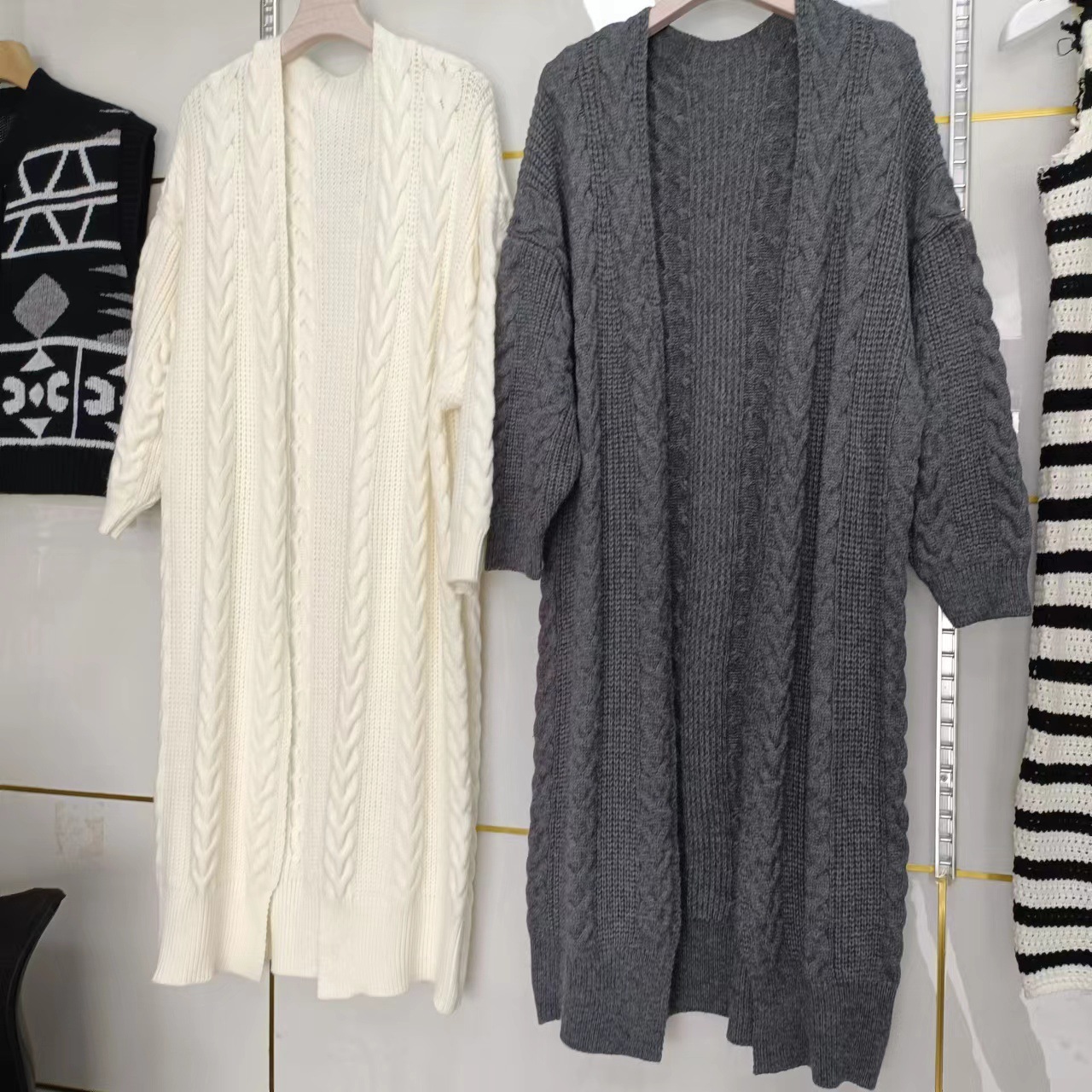 {"Cut":"Loose","Style":"Lazy Style","Length":"Long (80cm < Length ≤ 100cm)","Pattern":"Solid Color","Placket":"No Button","Thickness":"Thick","Style Type":"Japanese and Korean Casual","Collar Type":"V-Neck","Fabric Name":"Merino Wool","Sleeve Type":"Batwing Sleeve","Craftsmanship":"Pasting/Piecing","Sleeve Length":"Long Sleeve","Wearing Style":"Open Shirt","Fashion Element":"Plain Color","Combination Form":"Single Piece","Cross-border Style Type":"Comfortable Casual","Main Fabric Composition":"Polyester (Polyester Fiber)","Main Fabric Composition 2":"Polyester","Main Fabric Composition Content":"50% (inclusive) - 70% (exclusive)","Main Fabric Composition 2 Content":"30% (inclusive) - 50% (exclusive)"}