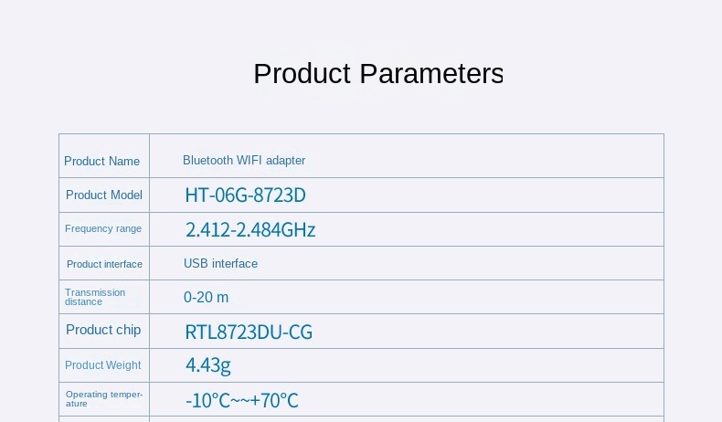 5.0 USB WiFi Wireless Adapter with Bluetooth Transmitter, Reception, External Power Supply, 15 Mbps Transfer Rate, 10m Range, 2.1 Bluetooth Standard, 2.4GHz Frequency