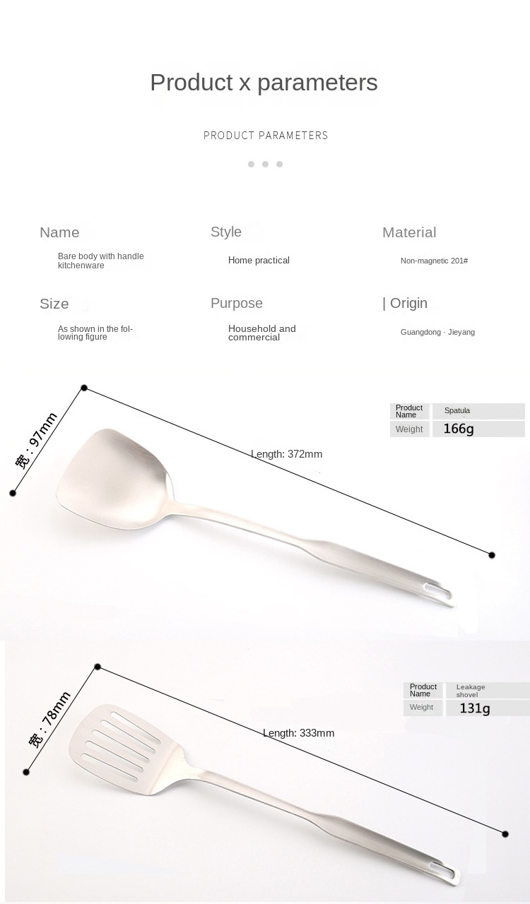 Stainless Steel Kitchen Utensils Set with Thickened One-piece Handle for Commercial Kitchen