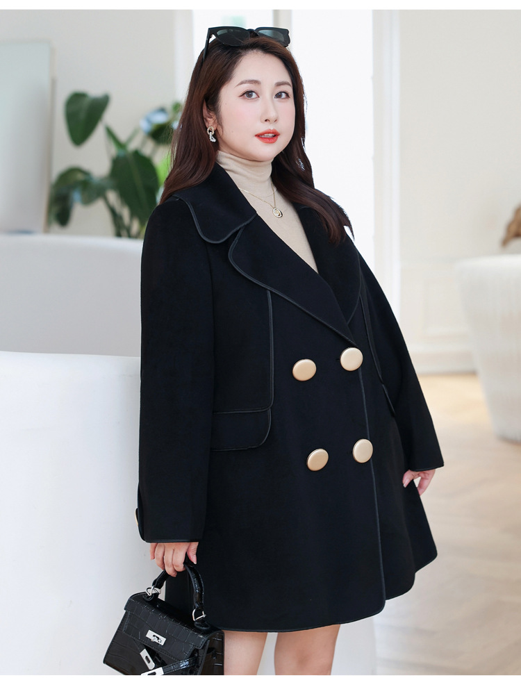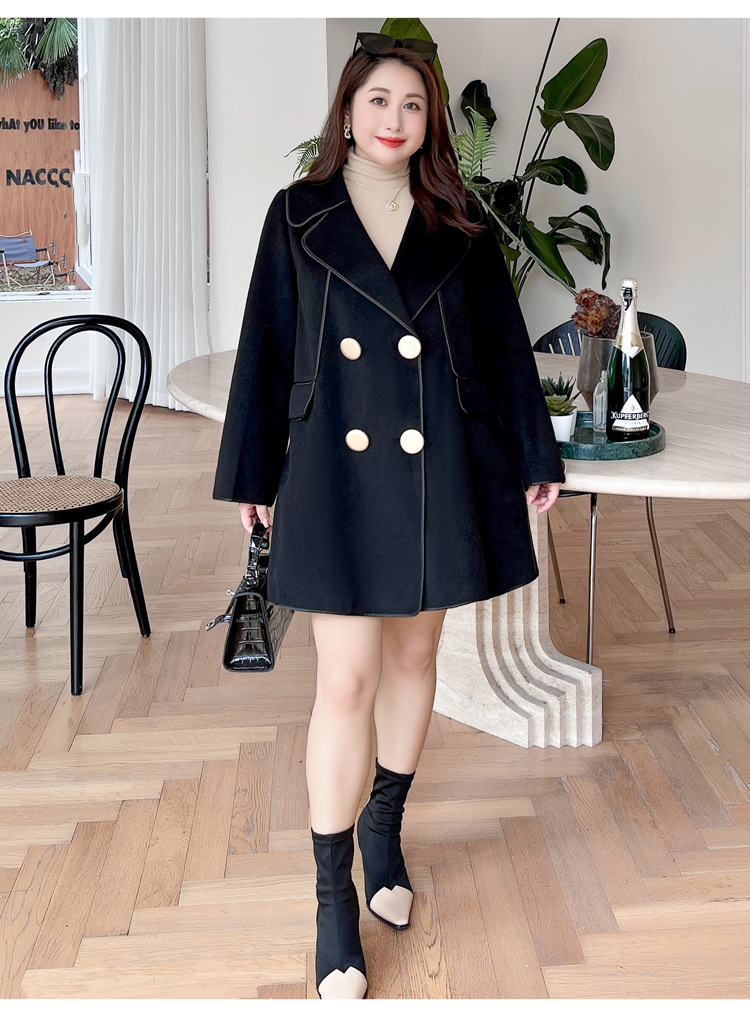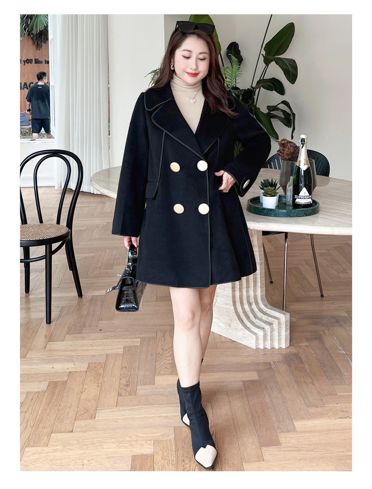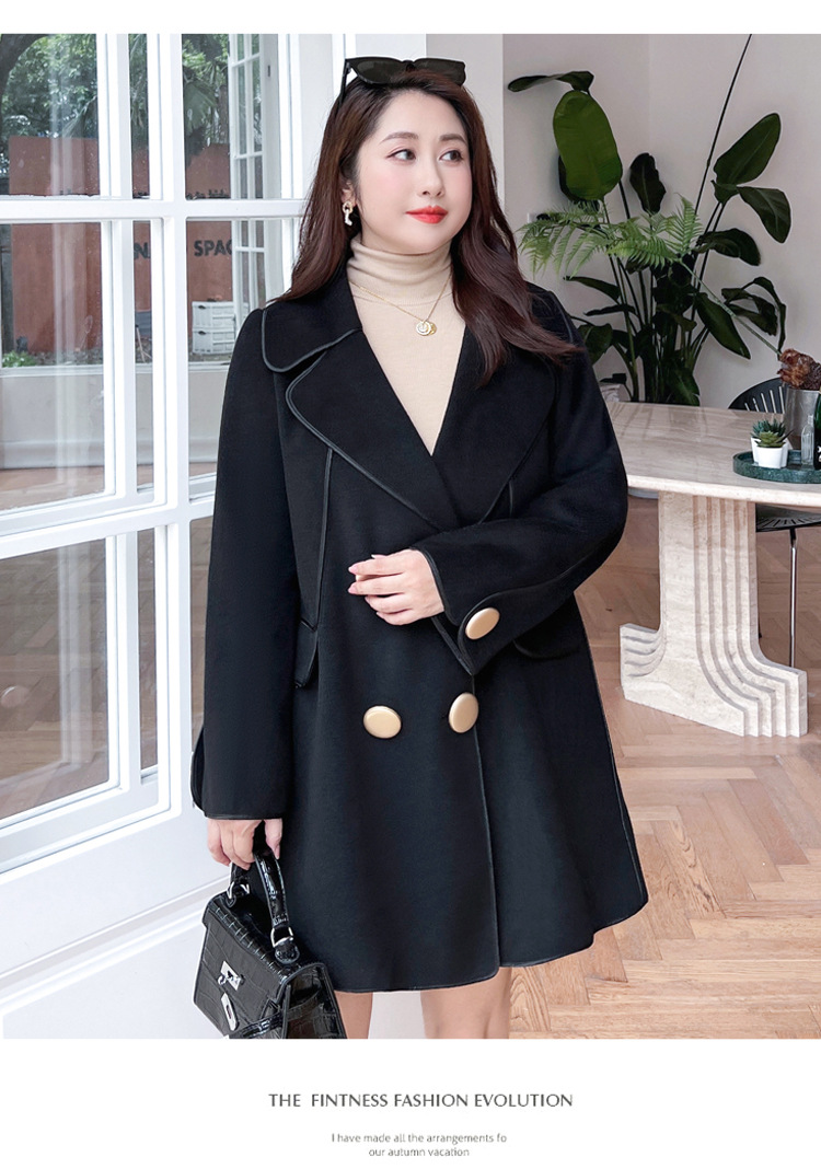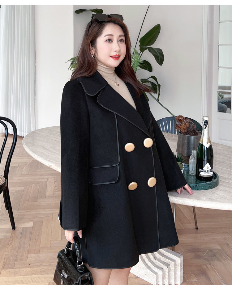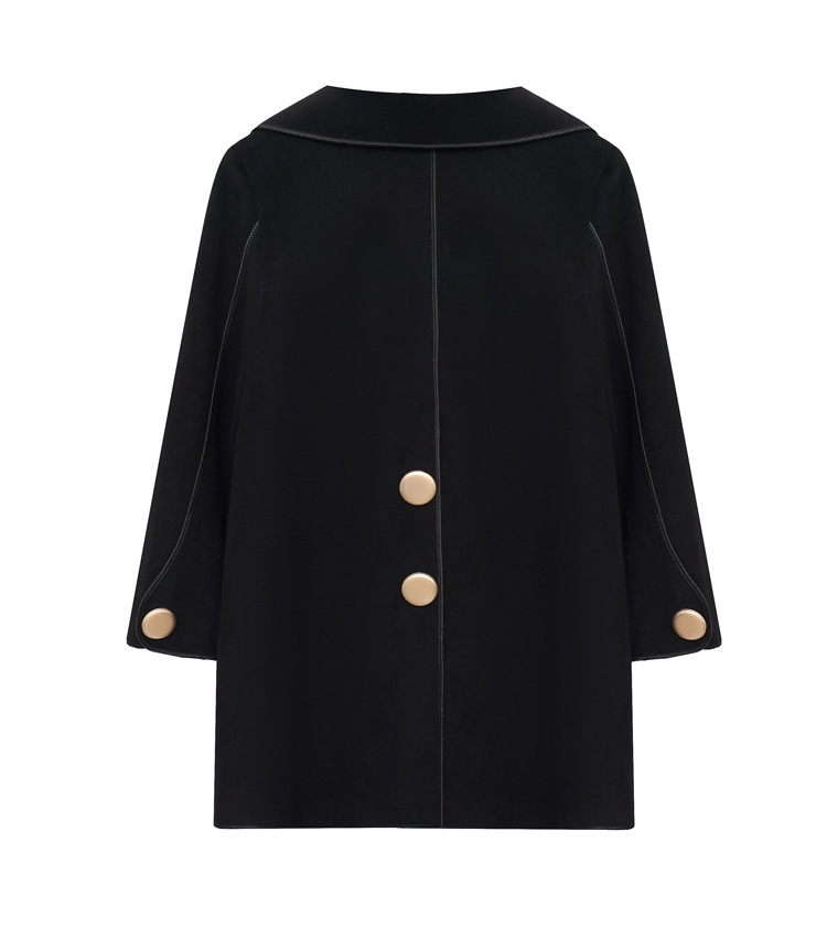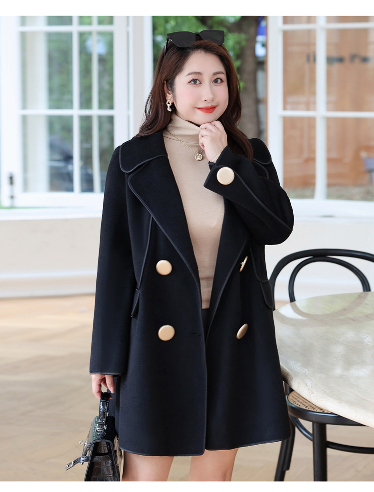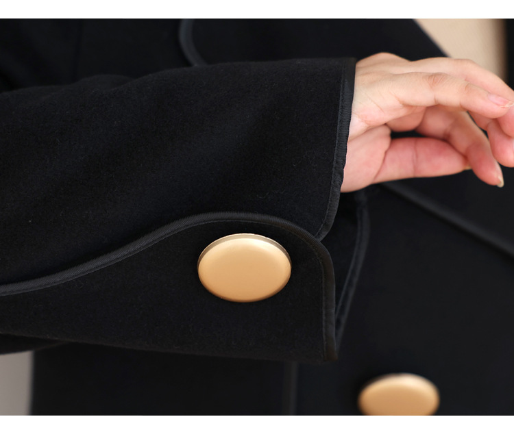 Abrigo de lana de doble cara con bolsillo, manga larga, ajuste suelto, estilo occidental y largo longitud
