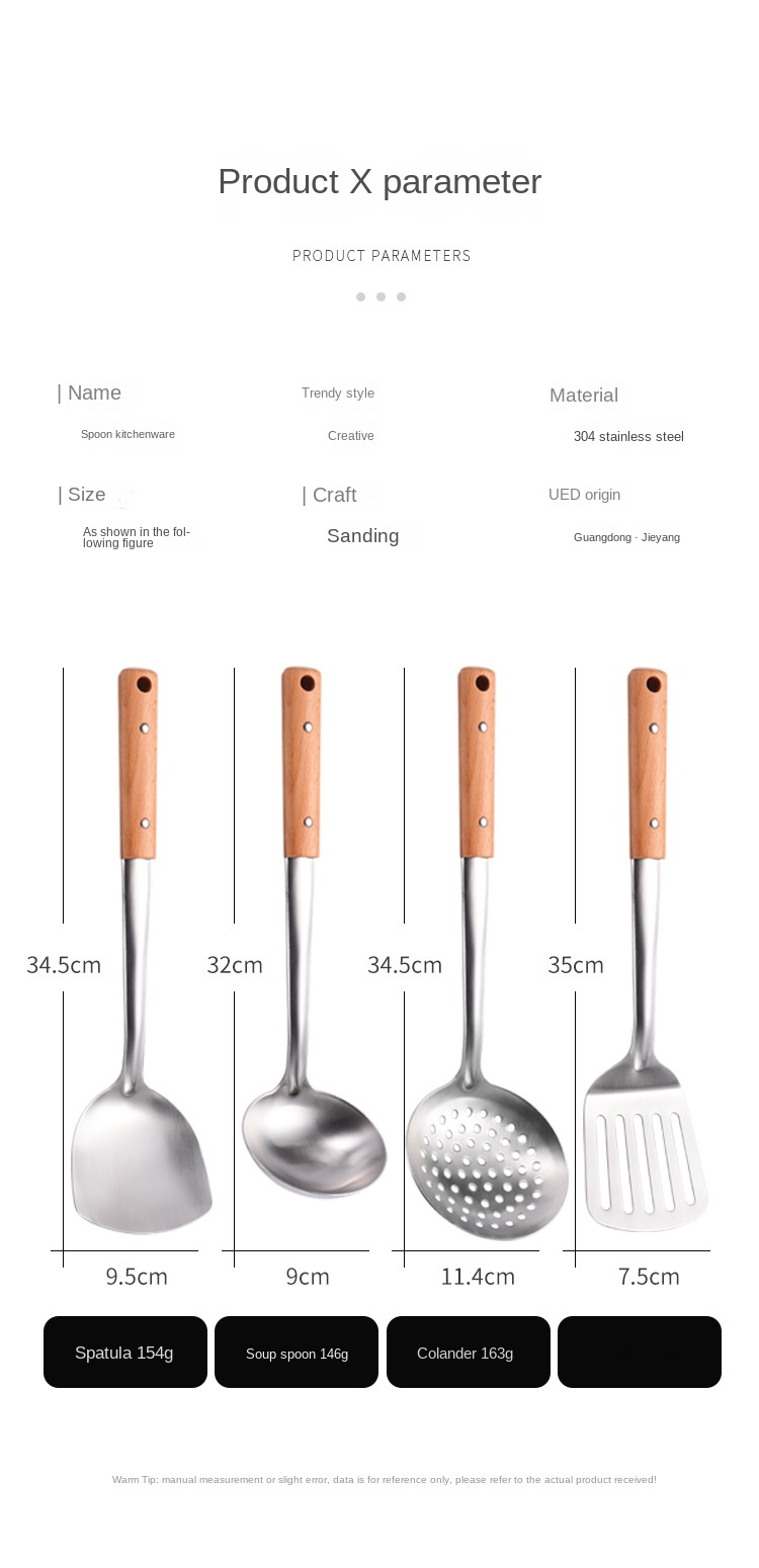 304 Stainless Steel Kitchen Utensil Set with Non-Stick Cooking Tools and Heat Resistant Handles