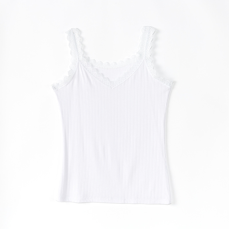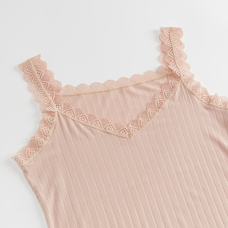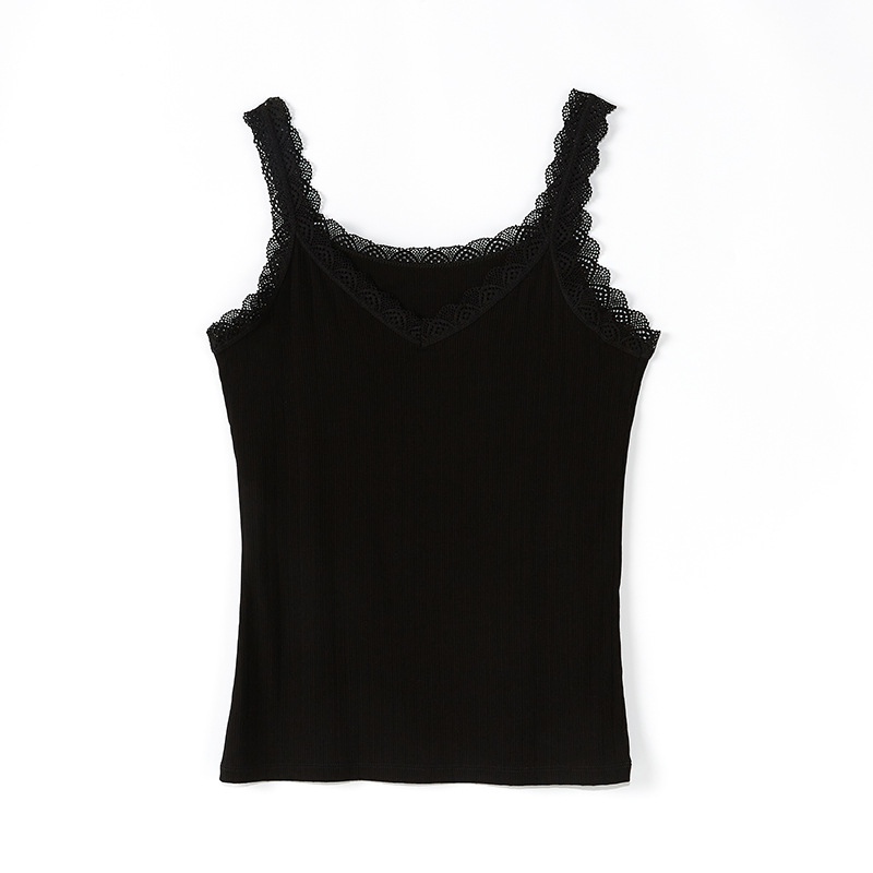 Camiseta sin mangas de correa de encaje de verano con cuello en V, ajuste suelto, 91% -99% de algodón, para mujeres de 30 a 34 años