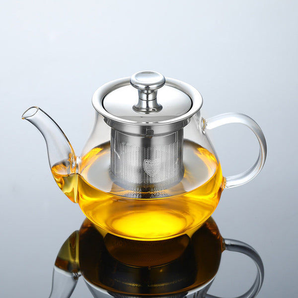 Round Glass Teapot with High Borosilicate Glass and Steel Strainer, Perfect for Home Use