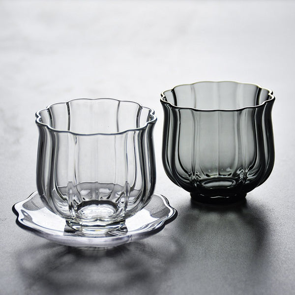 110ml Chinese Style High Borosilicate Glass Teacup with Lotus Petal Design for Home Use