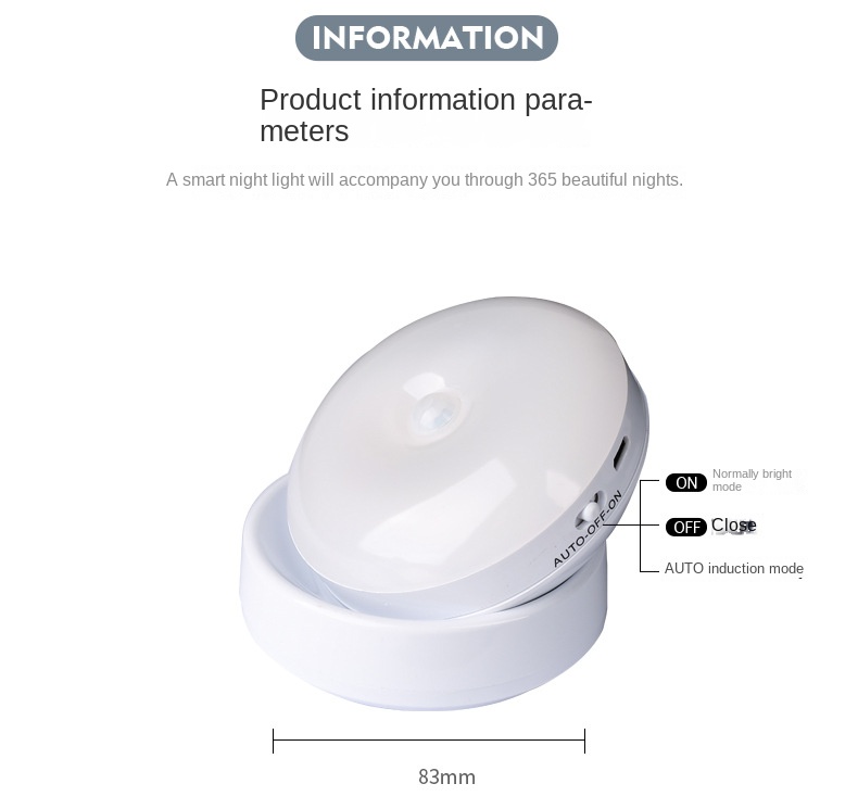 LED Night Light with Motion Sensor, USB Powered, 360 Rotation, PC Material