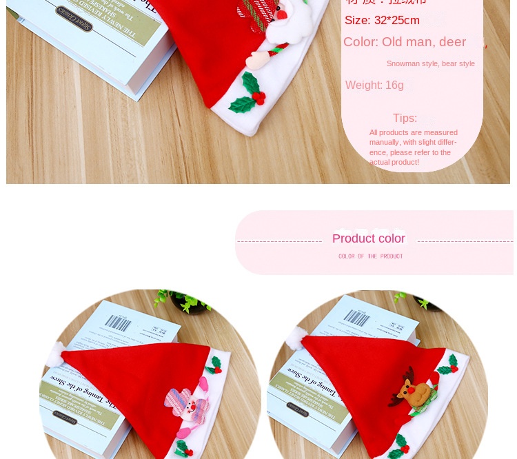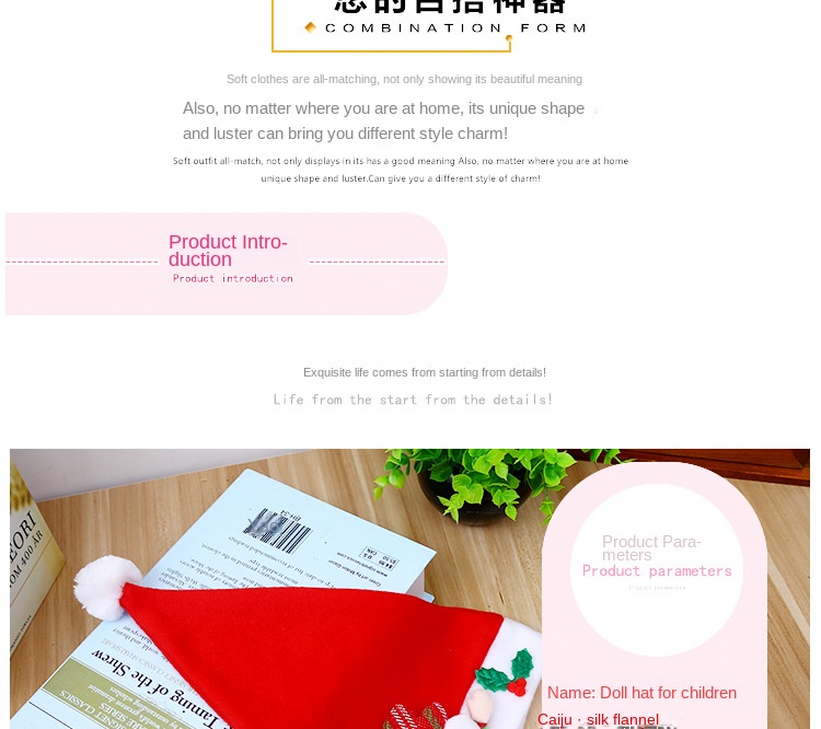 Christmas Decoration Plush Cloth Santa Claus Hat for Children
