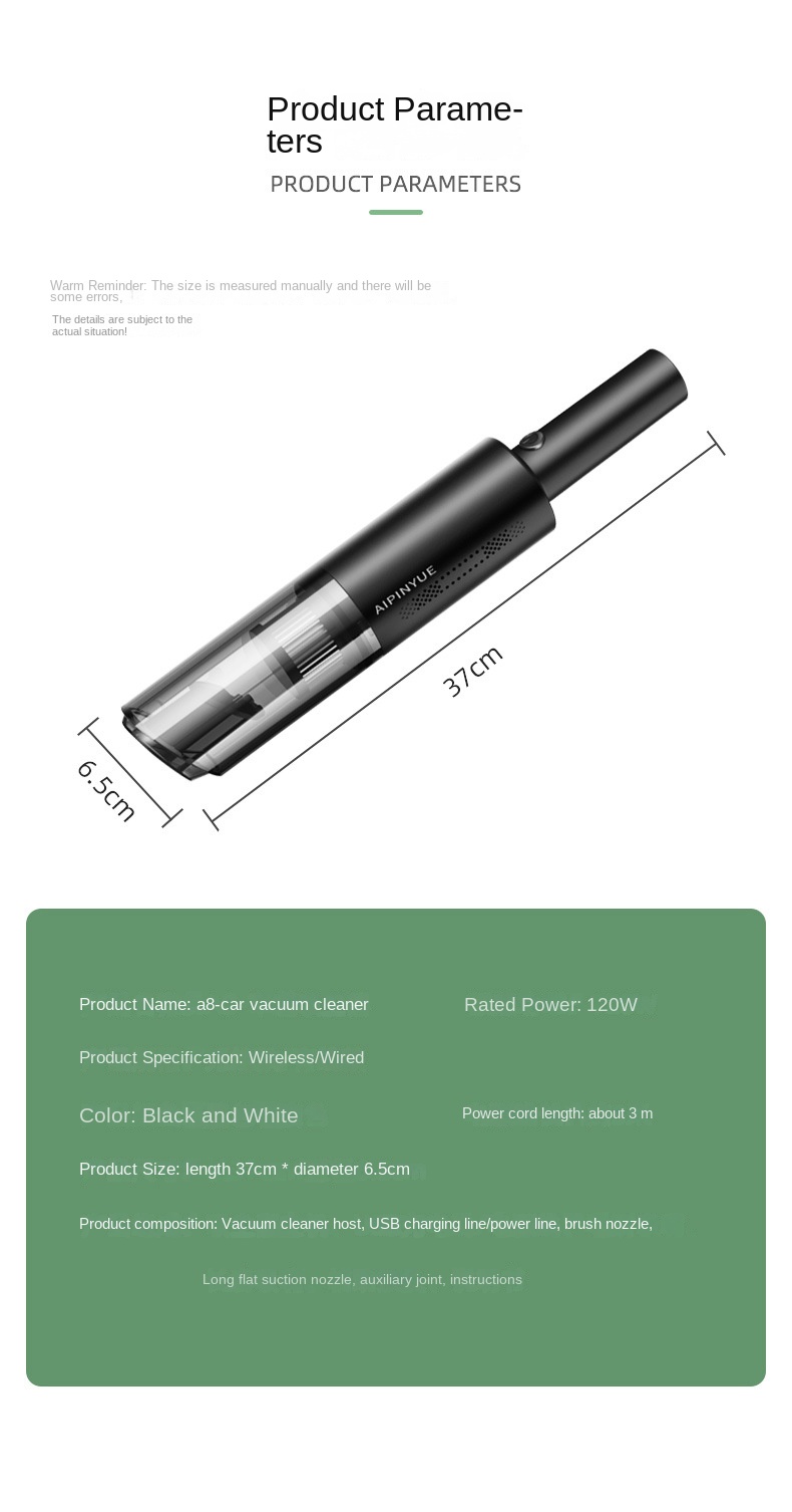A8 Portable Wireless Vacuum Cleaner with 6000 (r/min) Speed and 12V Pressure for Home and Car Use