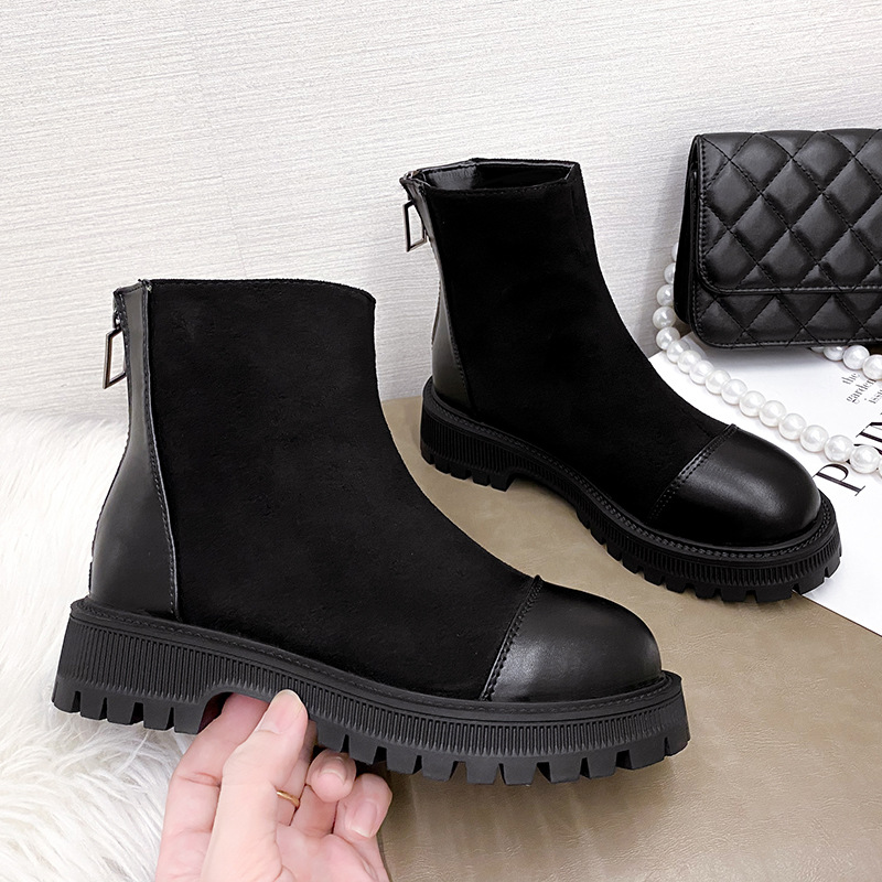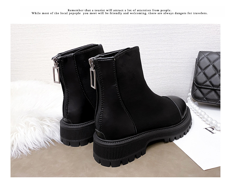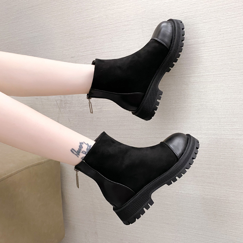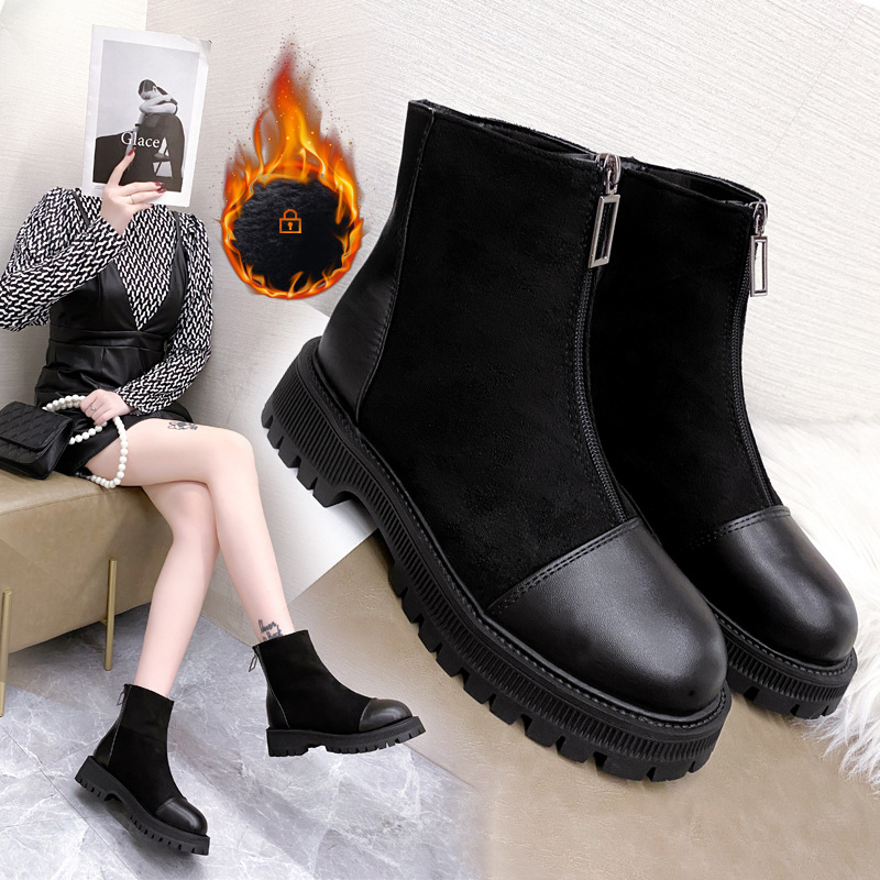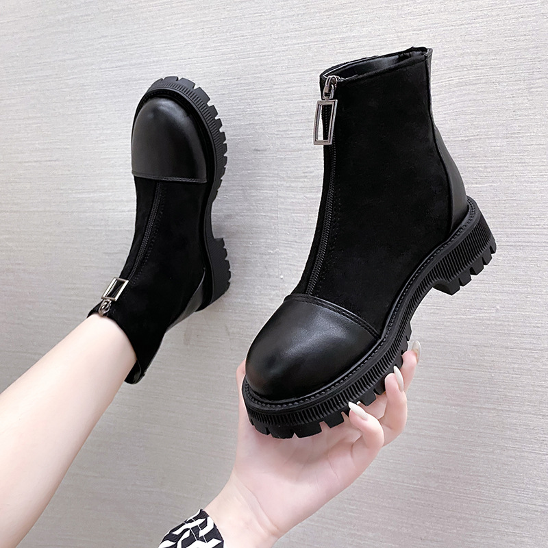 Botas Martin de las mujeres con dedo del pie redondo, cierre de la cremallera y suela gruesa