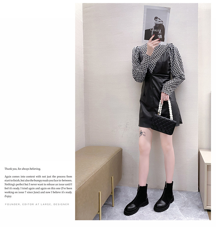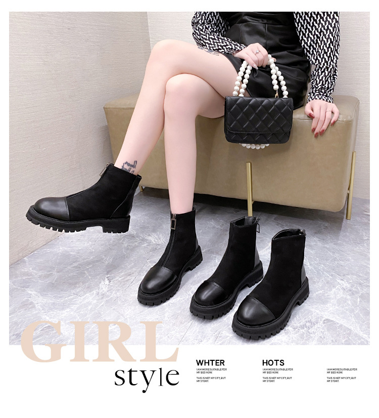 - ["Zipper closure for easy on and off","Thick sole for added comfort","Round toe for a stylish look","Synthetic leather for durability","Suitable for all seasons"]