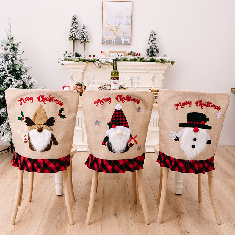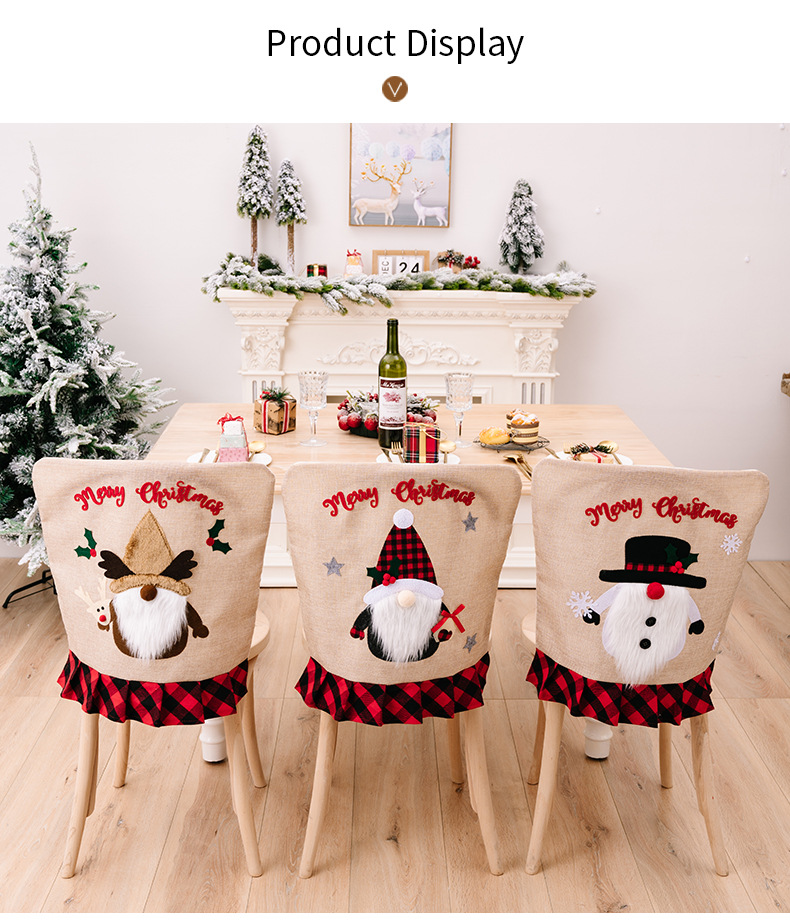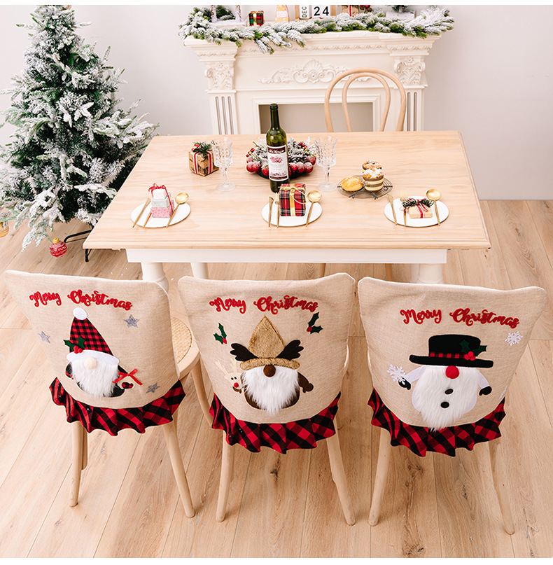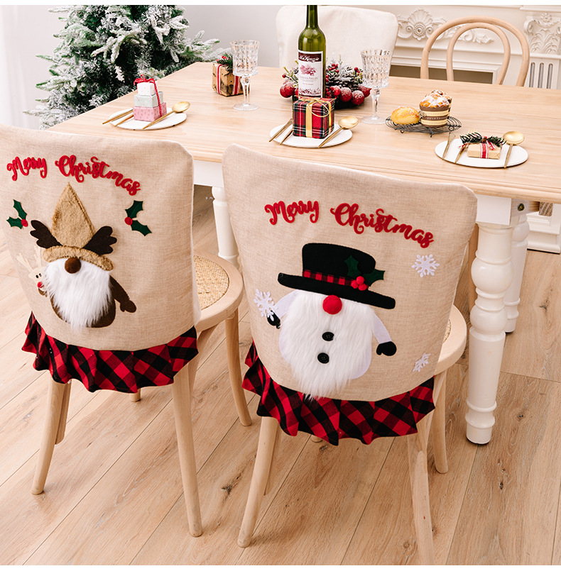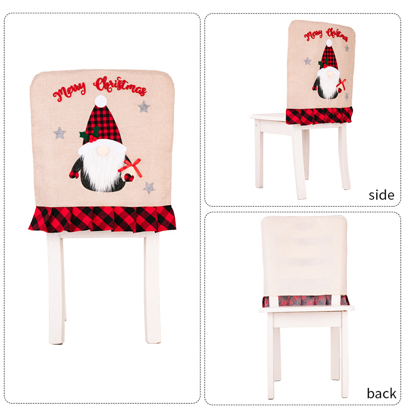 New Christmas Chair Cover Red Black Plaid Border Christmas Season Forest Santa Claus Cartoon Chair Cover