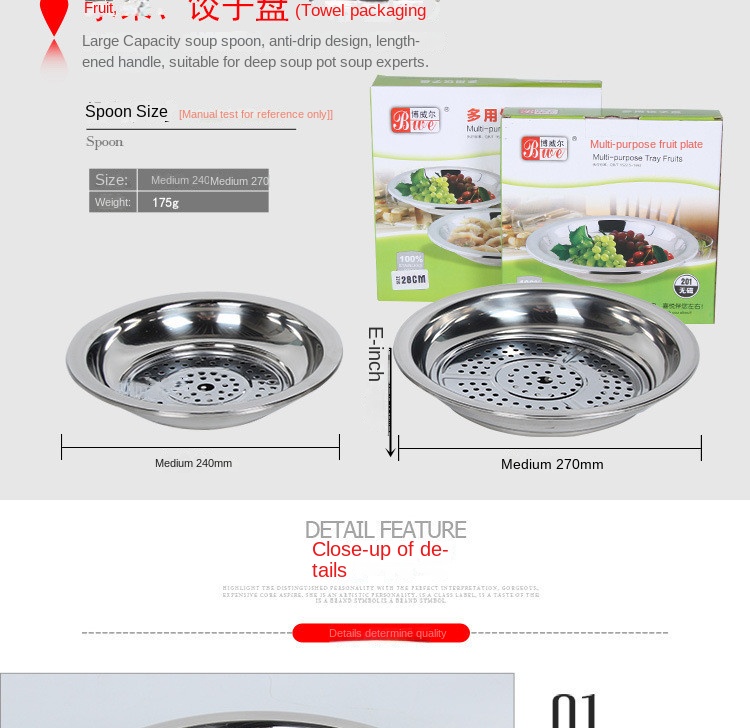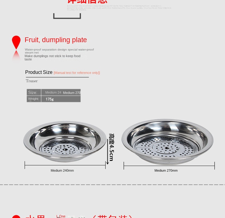 Stainless Steel Multi-Purpose Dumpling Plate for Kitchen Double-Layer Draining Plate for Fruits and Dumplings