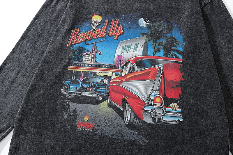 TKPA American Street Style Long Sleeve T-shirt hiphop Retro Print Oversized Round Neck Sweatshirt Men