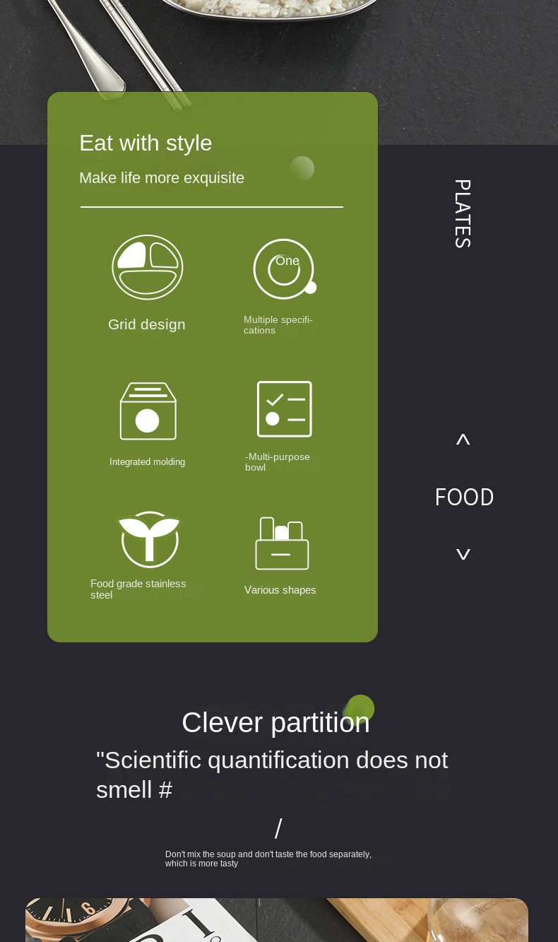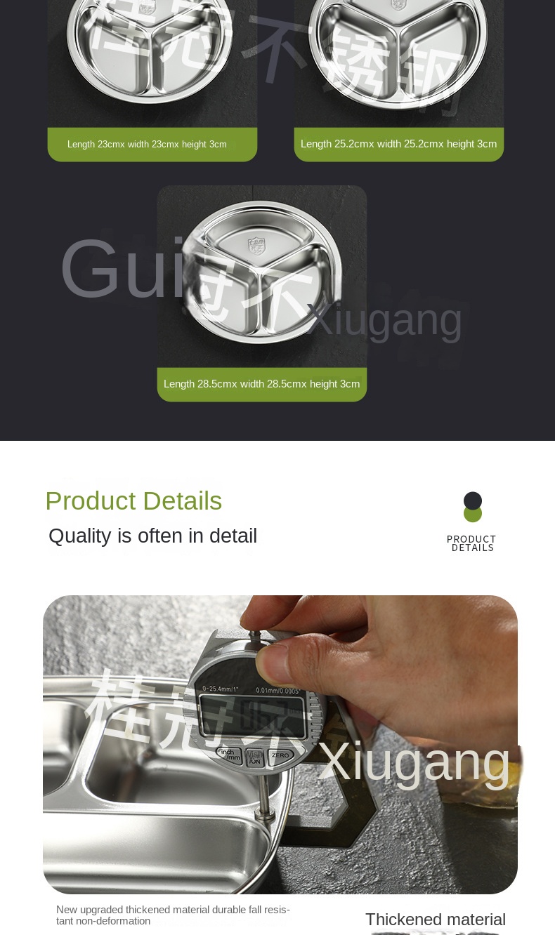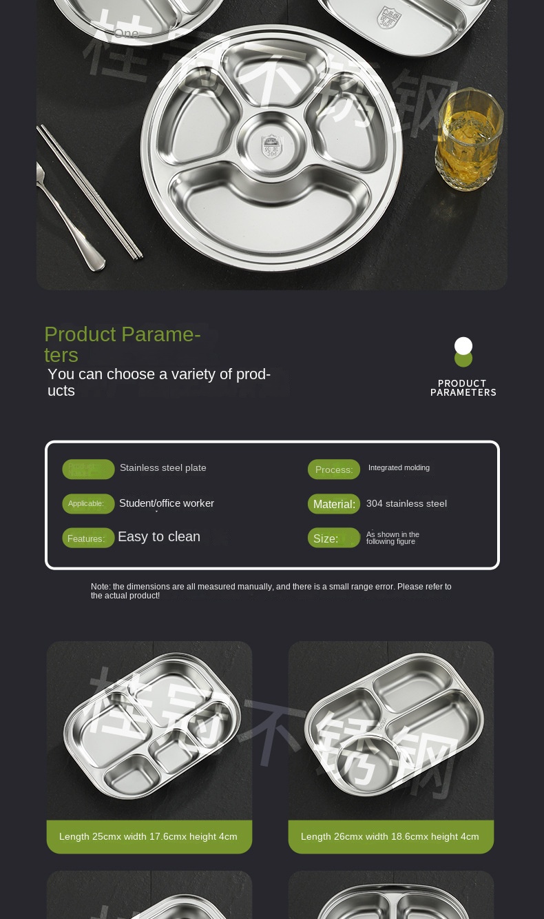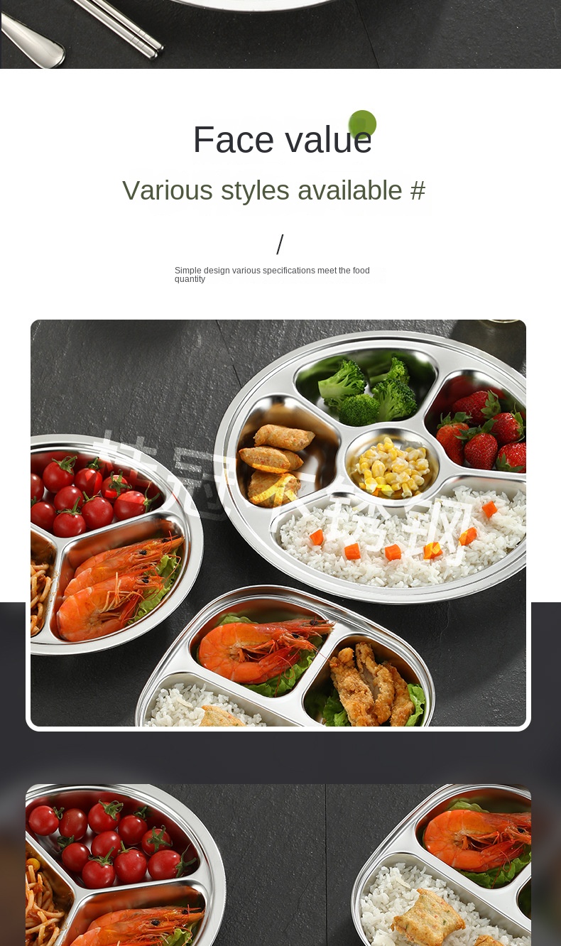 304 Food Grade Stainless Steel Plate with Deepened and Thickened Divider for School Children and Students