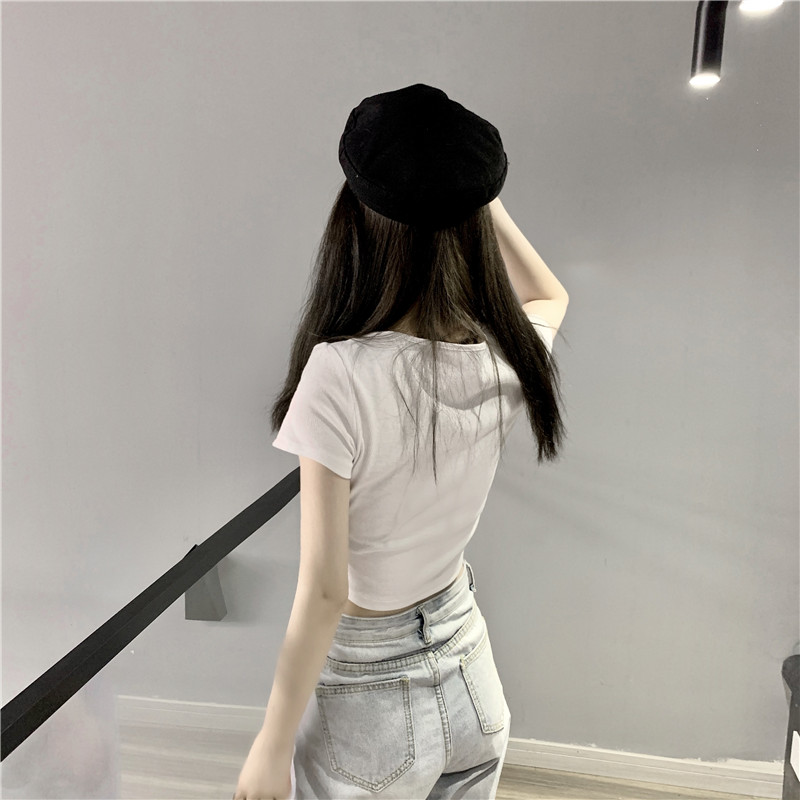 Camiseta de diseño de cadena de mariposa hueco de red roja para mujeres jóvenes de verano