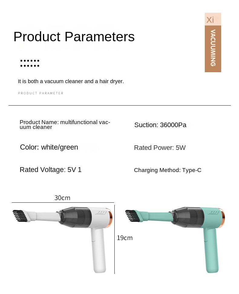 Wireless Handheld Vacuum Cleaner with Customized Pressure, Customized Input Power, 9000Pa Suction, White/Green Color Options