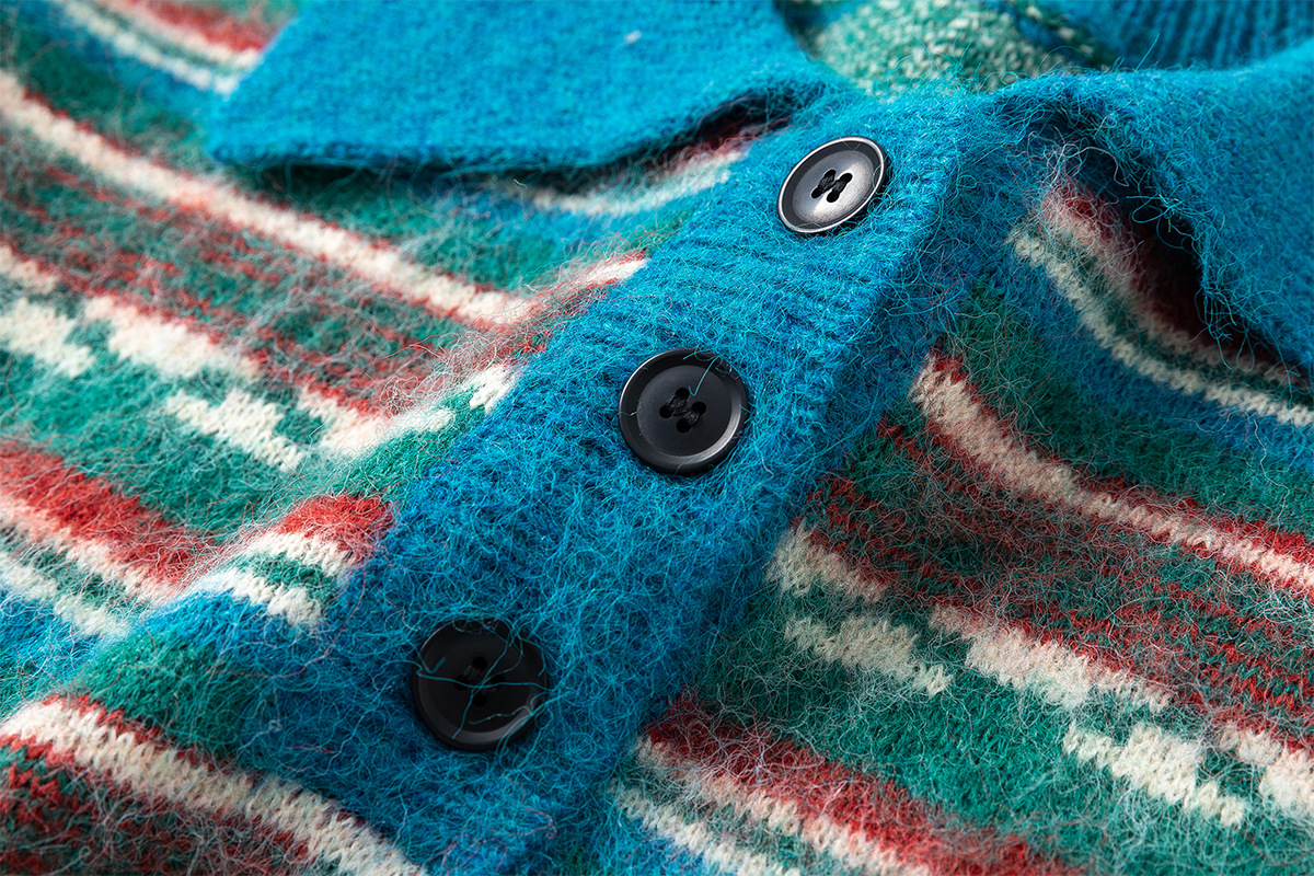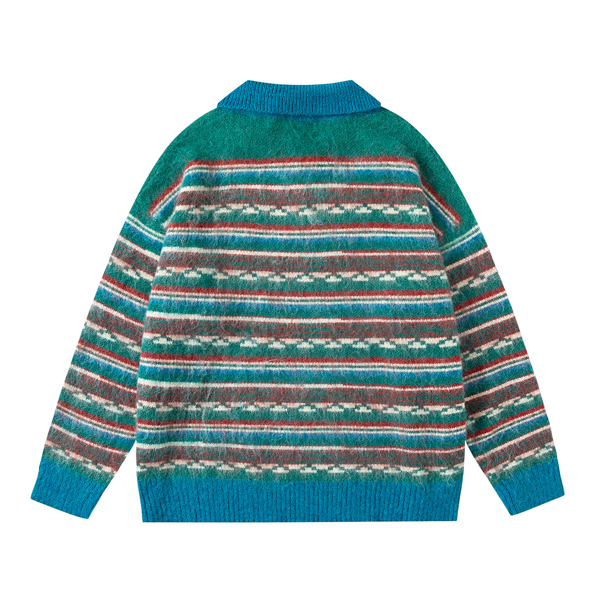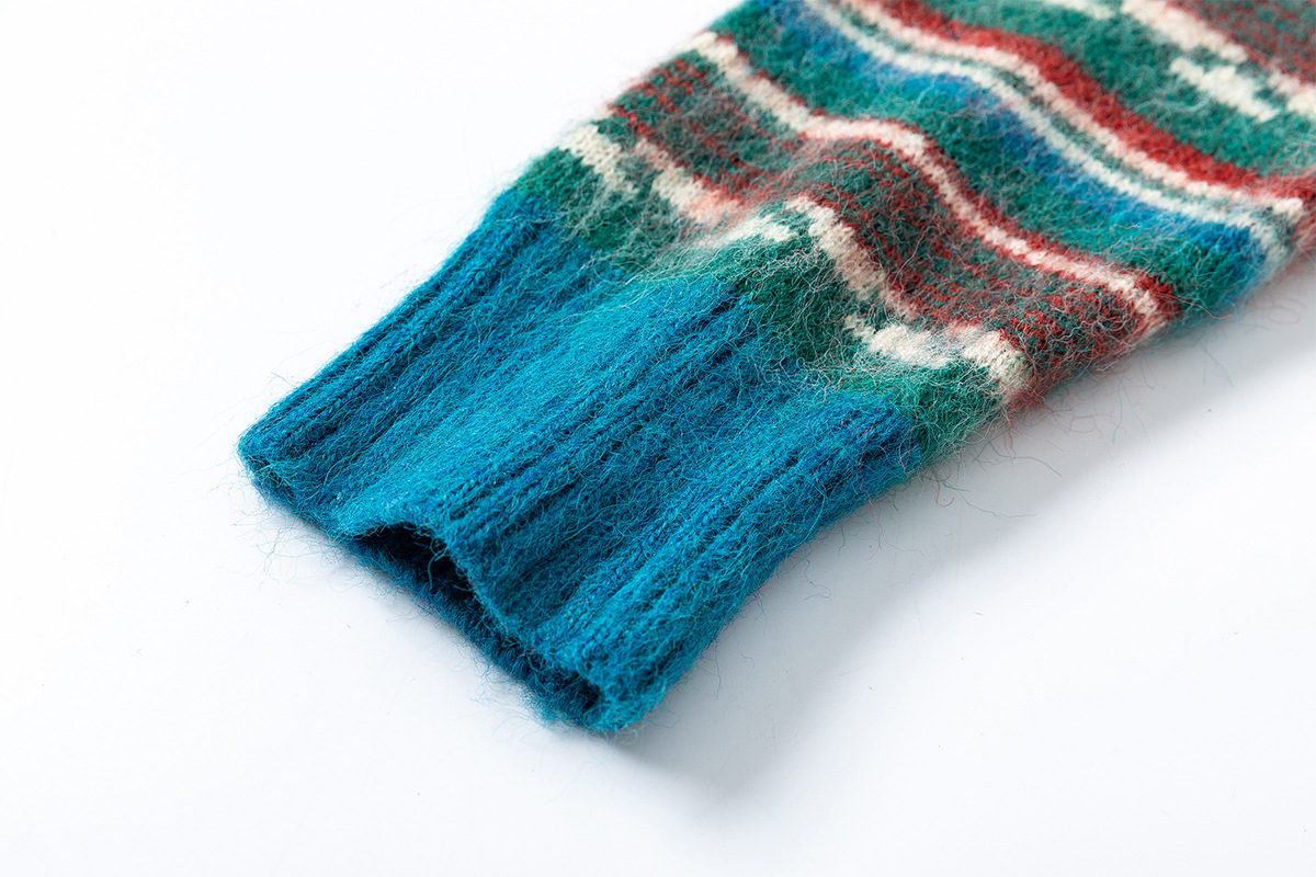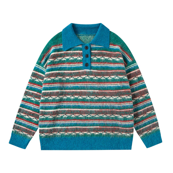 Jiayi Library 2024 Autumn Winter New American-style Lazy Color Block Striped Knit Polo Collar Sweater Bottoming Sweater