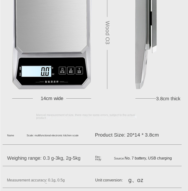 Multi-Function Electronic Kitchen Scale, 5KG Capacity, No Special Source, 7 Battery/USB Charging, Simple Style, 3kg Kitchen Scale, Non-Stainless Steel Kitchen Scale, For Baking Food
