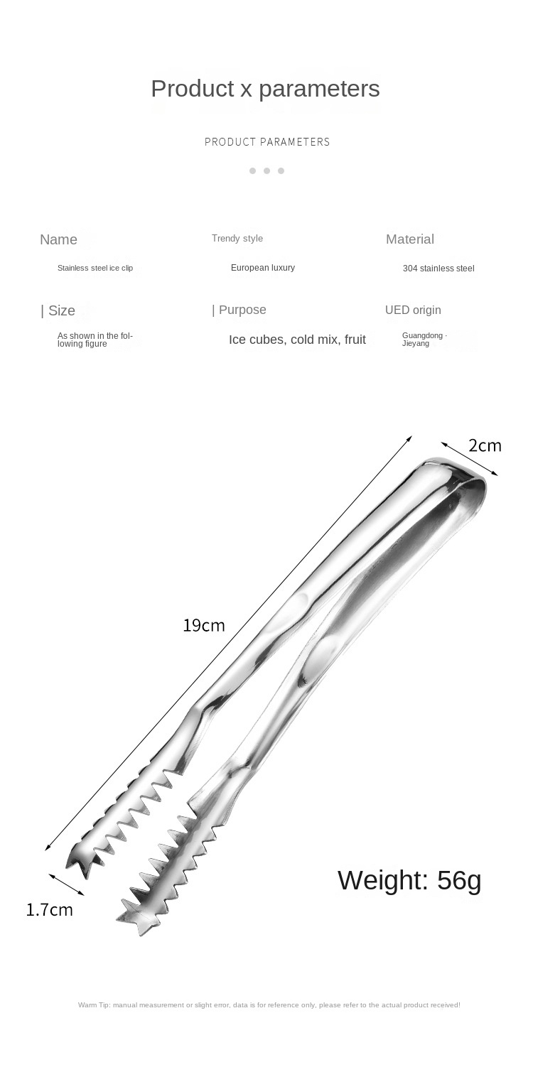304 Stainless Steel Ice Tongs - Heavy Duty Bar Ice Tongs for Food, BBQ, Sugar