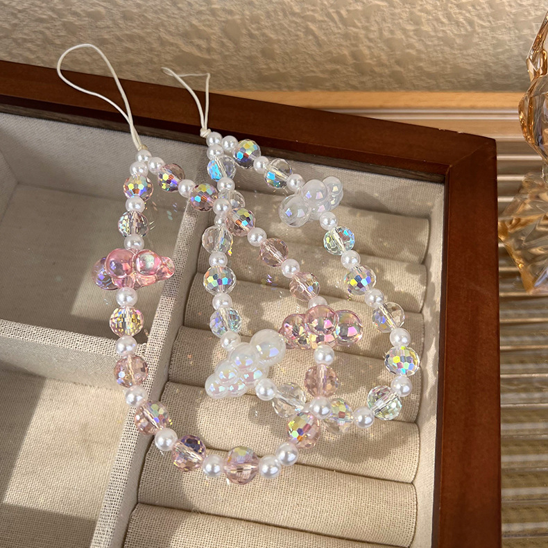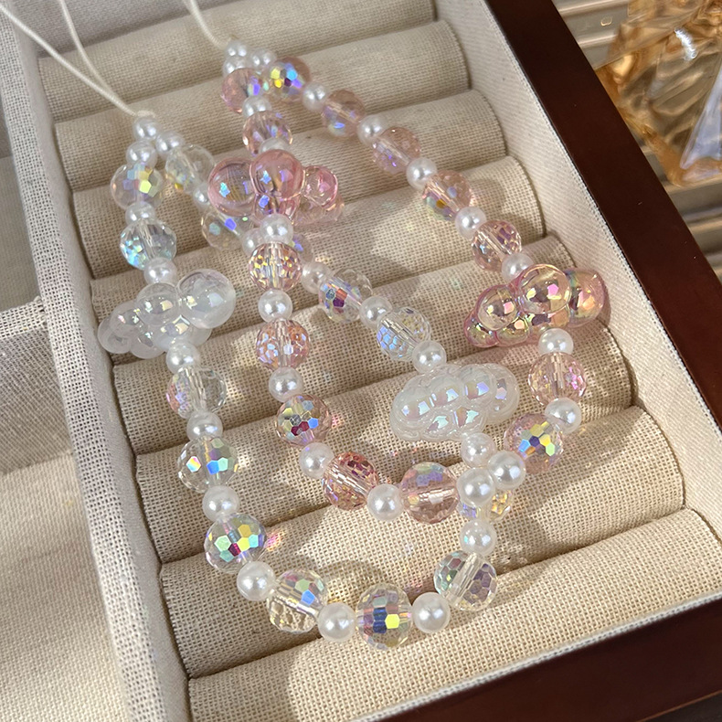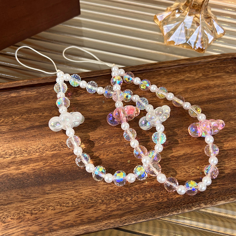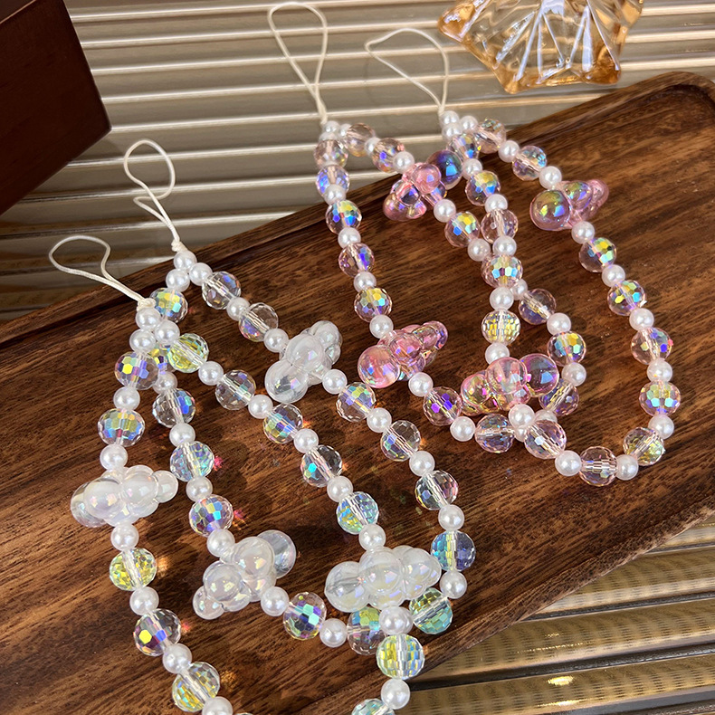- ["High-quality wood beads and handmade craftsmanship","Various shapes of crystal, pearl and cloud-shaped design","Can be customized with your own logo","Prevent your phone from being lost","Suitable for both men and women"]
