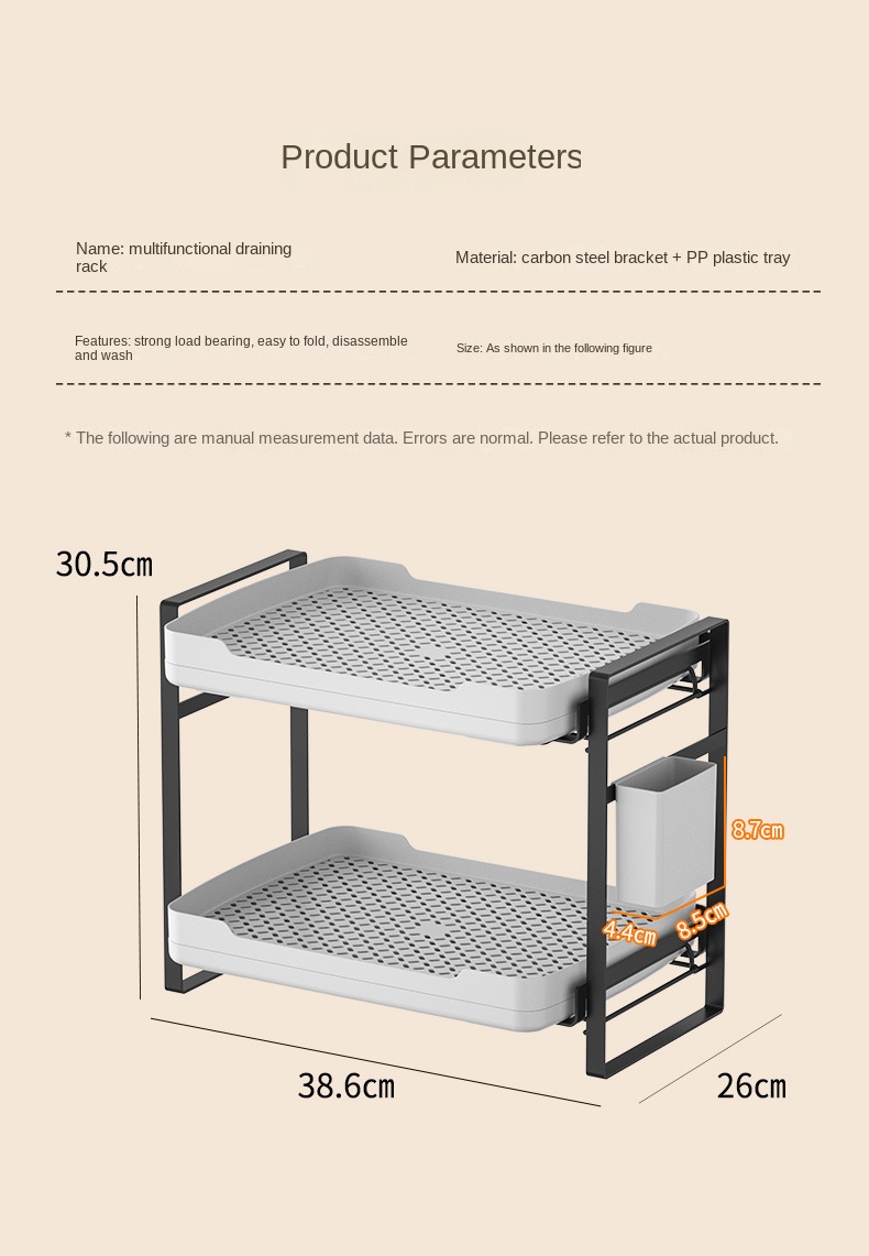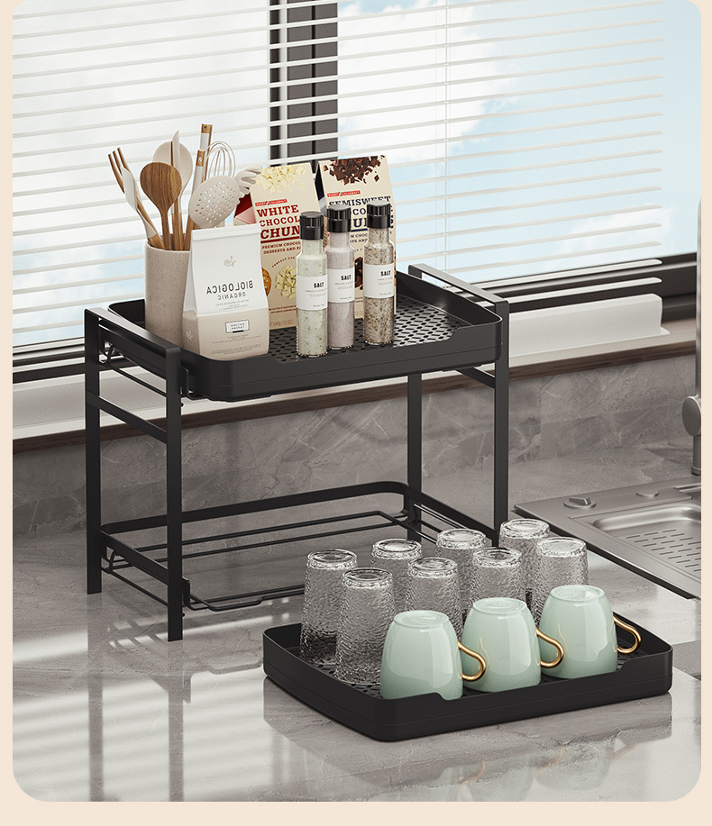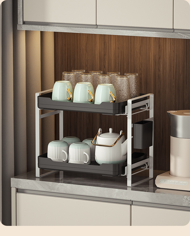 Double-Deck Draining Rack with Glass Cup Drying Tray and Tray for Home Kitchen Storage