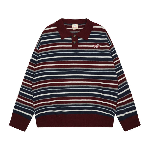Jiayi Library Men's 2024 Autumn and Winter New American Lazy Style Striped Knit Sweater Turn-down Collar Sweater Couple Bottom Shirt