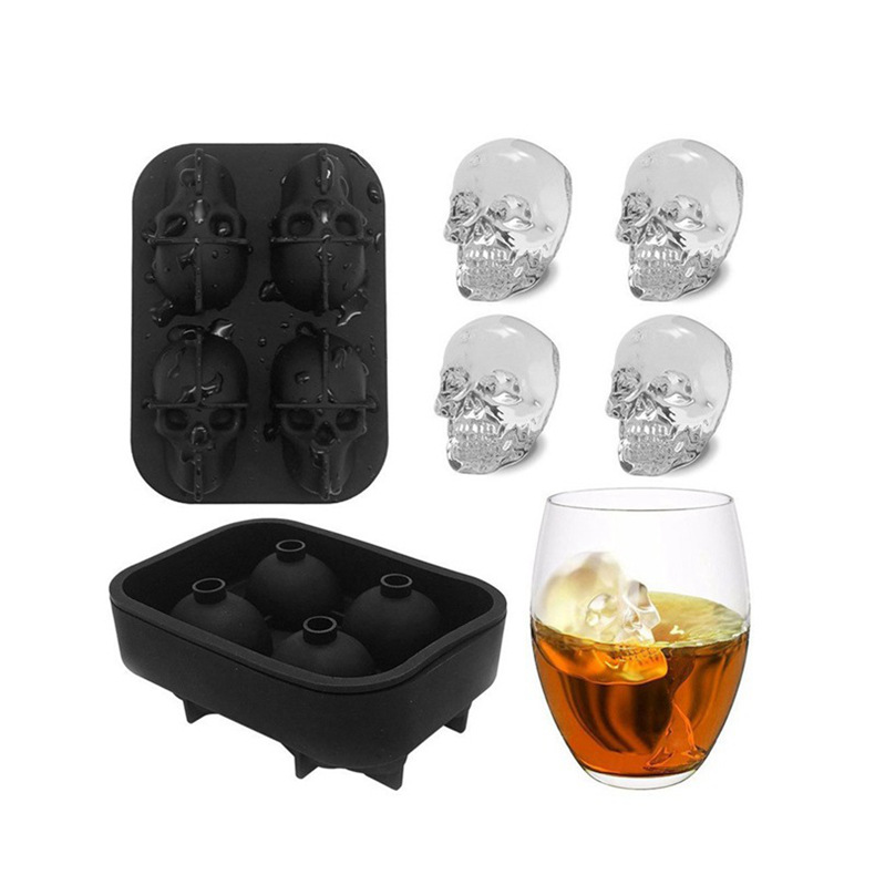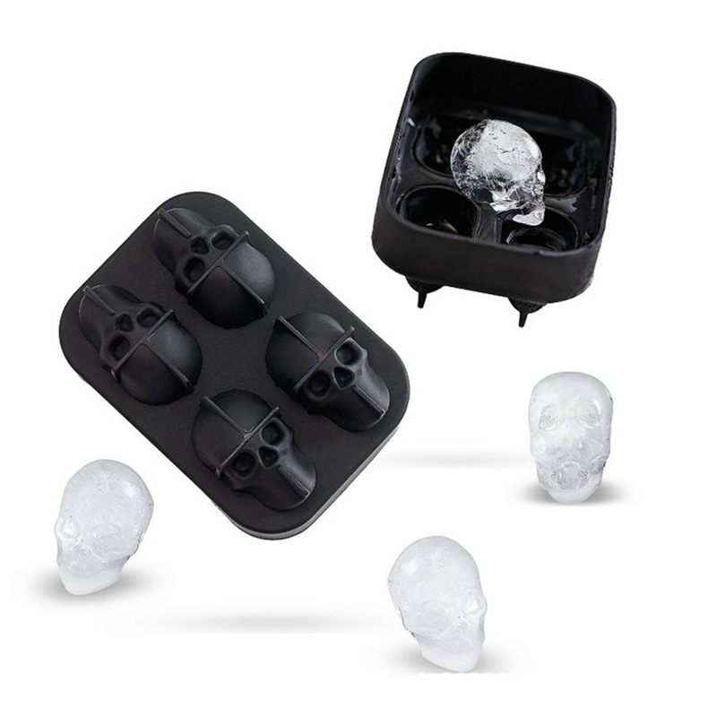 Whisky creativo de Halloween 4 Moldes de cubos de hielo de calavera Moldes de silicona de grado de comida
