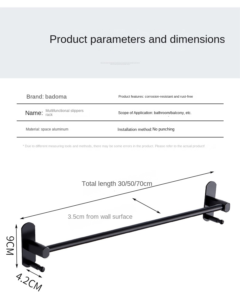 Modern Wall-Mounted Shoe Rack, No Drilling Required, Aluminum Material, 1 Layer, Suitable for Bathroom, BDMal202