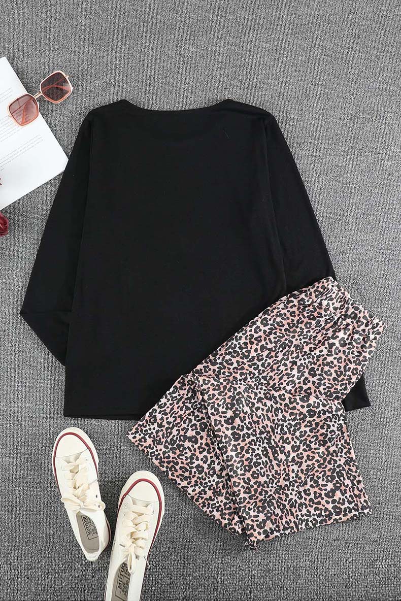Atuendo casual casual de mujeres 4512120 - Top de cuello V largo y pantalones de estampado de leopardo