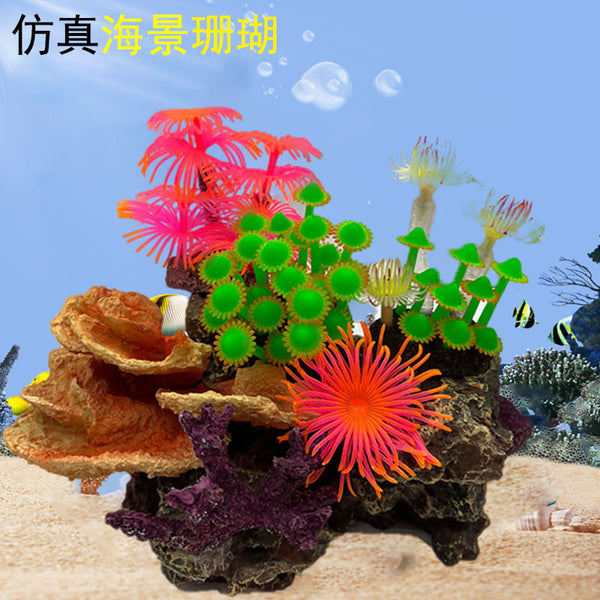 Real Wood + Iron Fish Tank Decor with Coral, Shells and Artificial Coral Trees