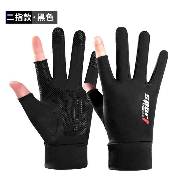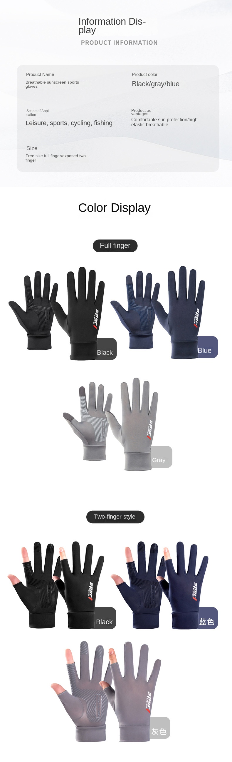 Summer UV Protection Thin Gloves for Men, Outdoor Driving, Fishing, Skid-proof, Breathable Ice Silk Gloves, All Fingers, Two Fingers