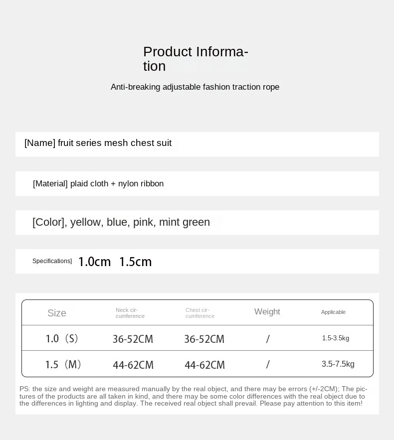 Dog Harness Chest Strap Pet Supplies for Small Dogs, Pull Leash for Teddy, Pomeranian, Chihuahua, etc.