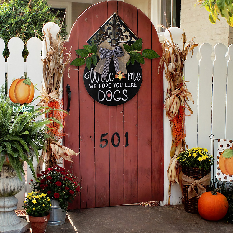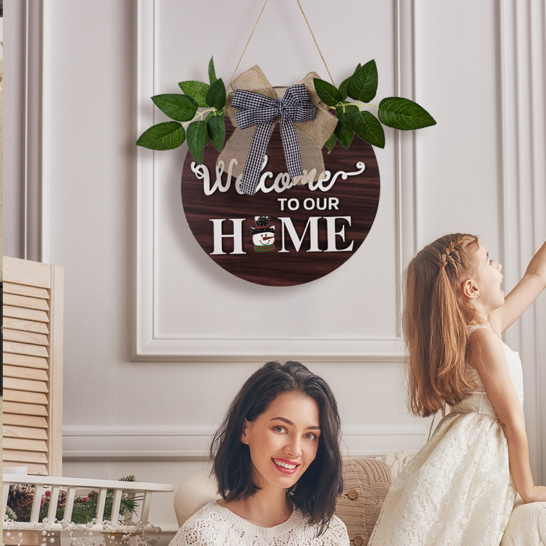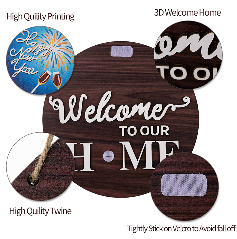 Hao Bei New Style Home Decoration Welcome Door Plate Interchangeable Accessories Double-sided Door Hanger Countryside Round Spring Summer Autumn Floral Wreath