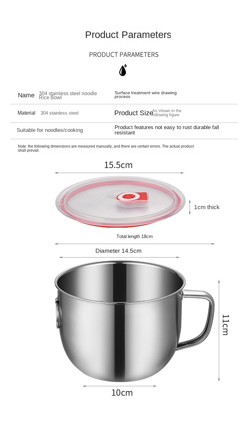 304 Stainless Steel Large Capacity Sealed Bowl with Lid and Handle for Noodles, Soup, etc.