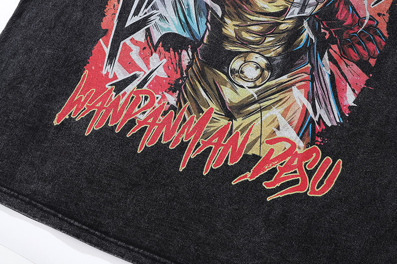 TKPA American Retro Street Fashion Anime Print Round Neck Sweater Hip-hop Washed Long Sleeve T-shirt Unisex